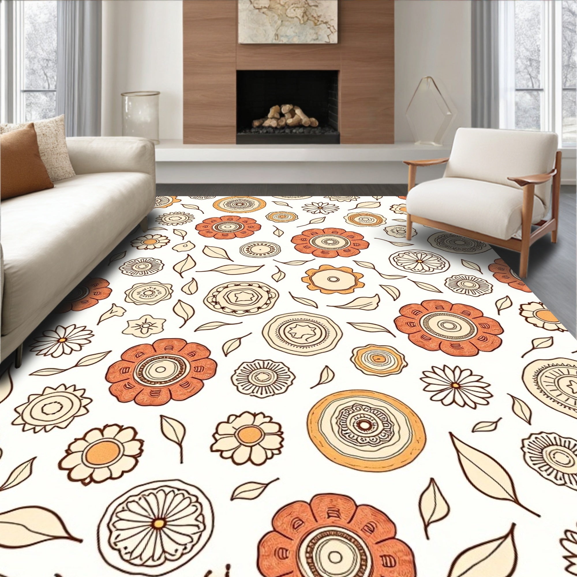 Flatwoven High Traffic Area Rug, Boho Enchanted Garden Decorative Artistic Creation, Non Slip, Stain Resistant, Washable Area Rugs for Living Room, Bedroom (Orange) Overview:
