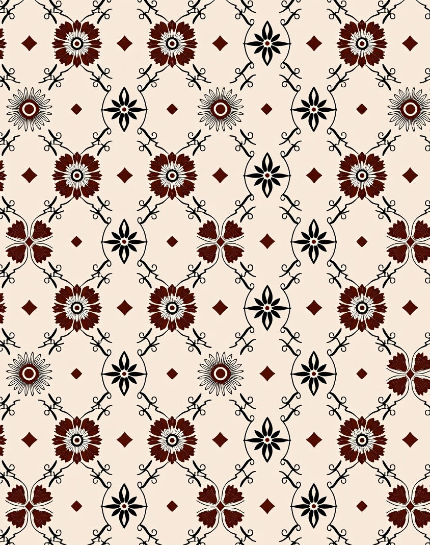Boho Inspired Floral Lattice With Elegant Symmetry (Beige)