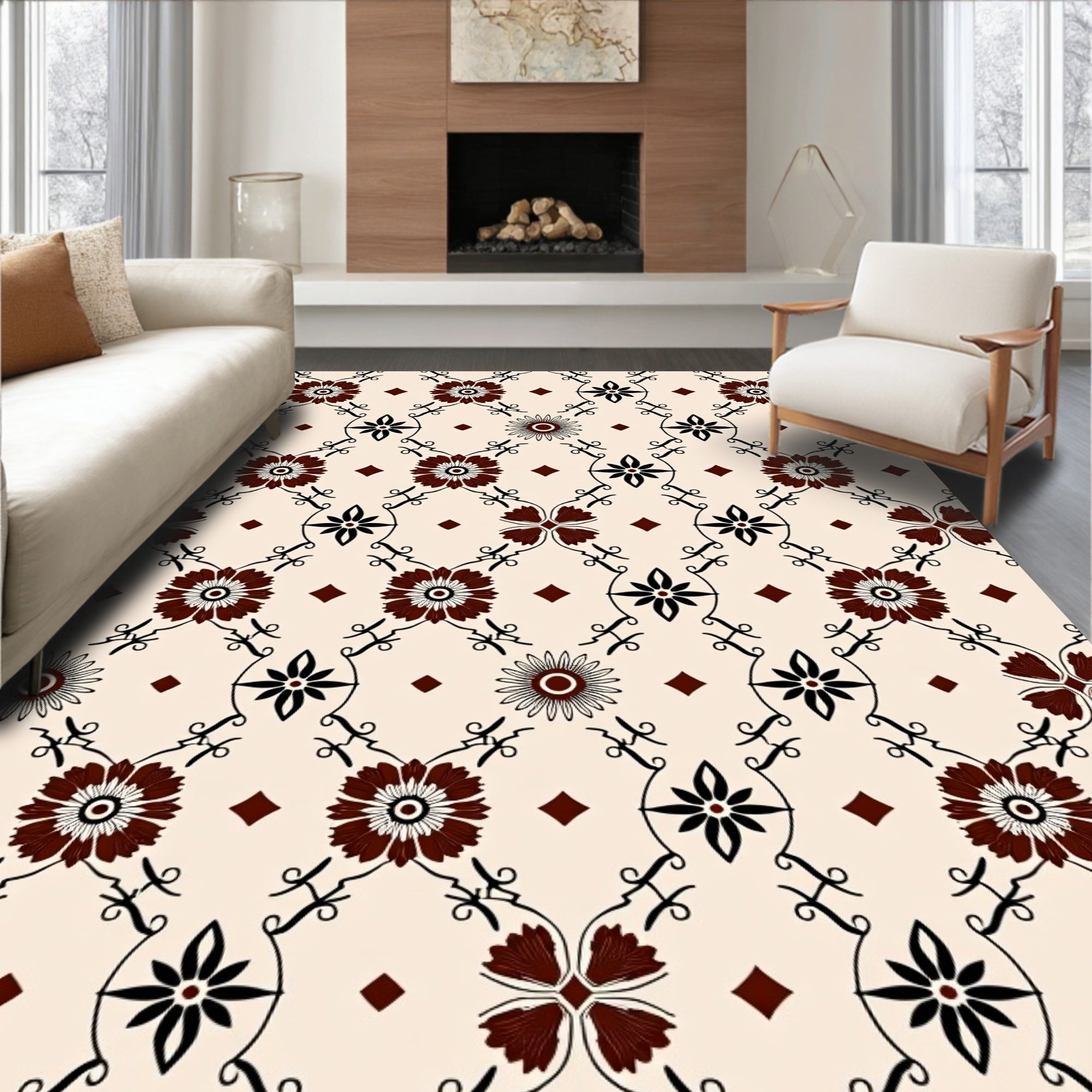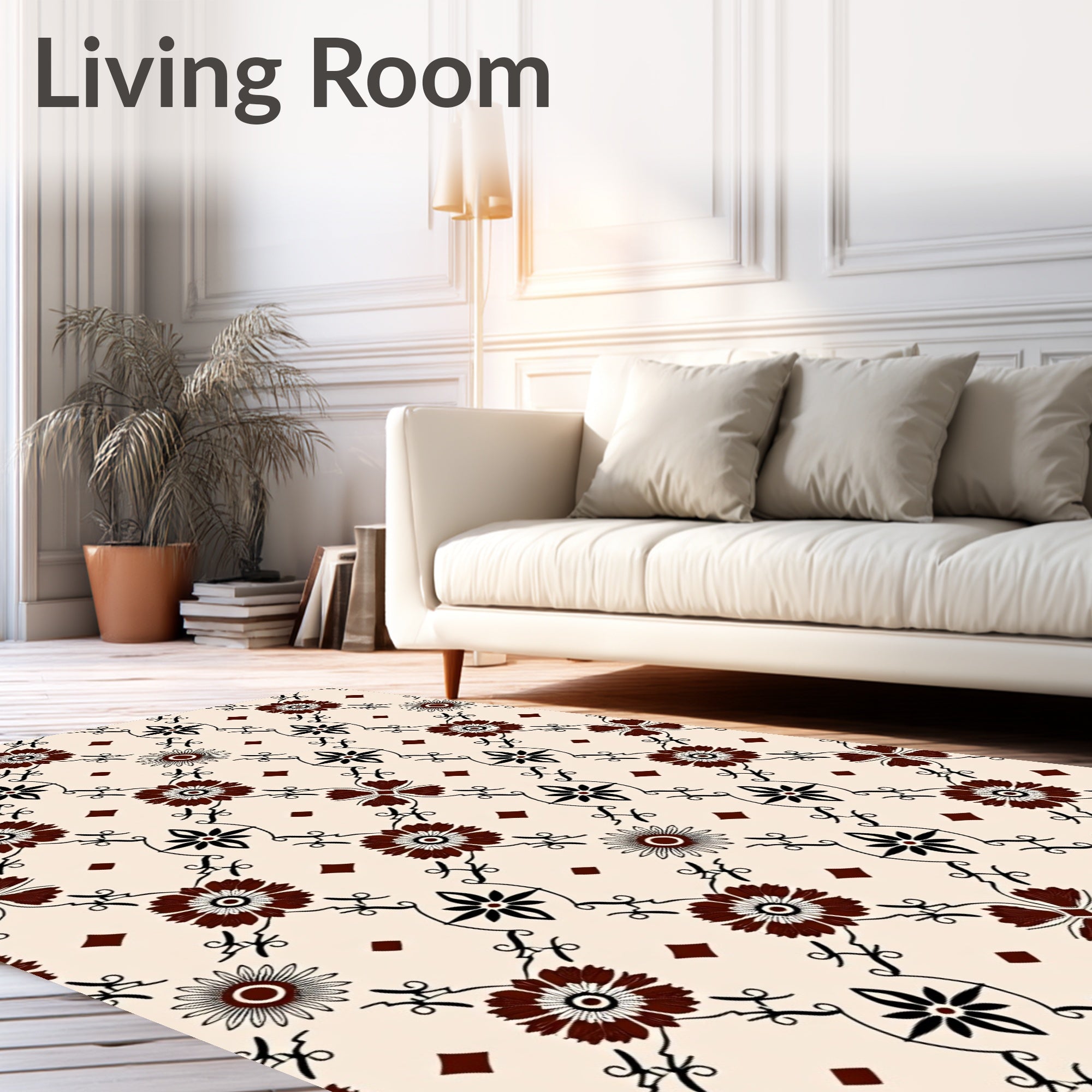 Flatwoven High Traffic Area Rug, Boho Inspired Floral Lattice With Elegant Symmetry, Non Slip, Stain Resistant, Washable Area Rugs for Living Room, Bedroom (Beige) Overview: