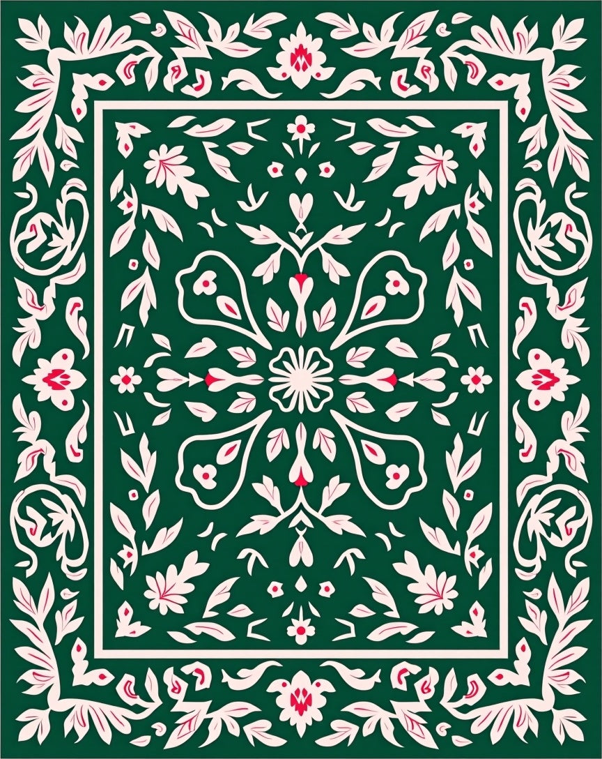 Boho Meadow Featuring Stylized Petals and Interwoven Leaf Motifs (Green)