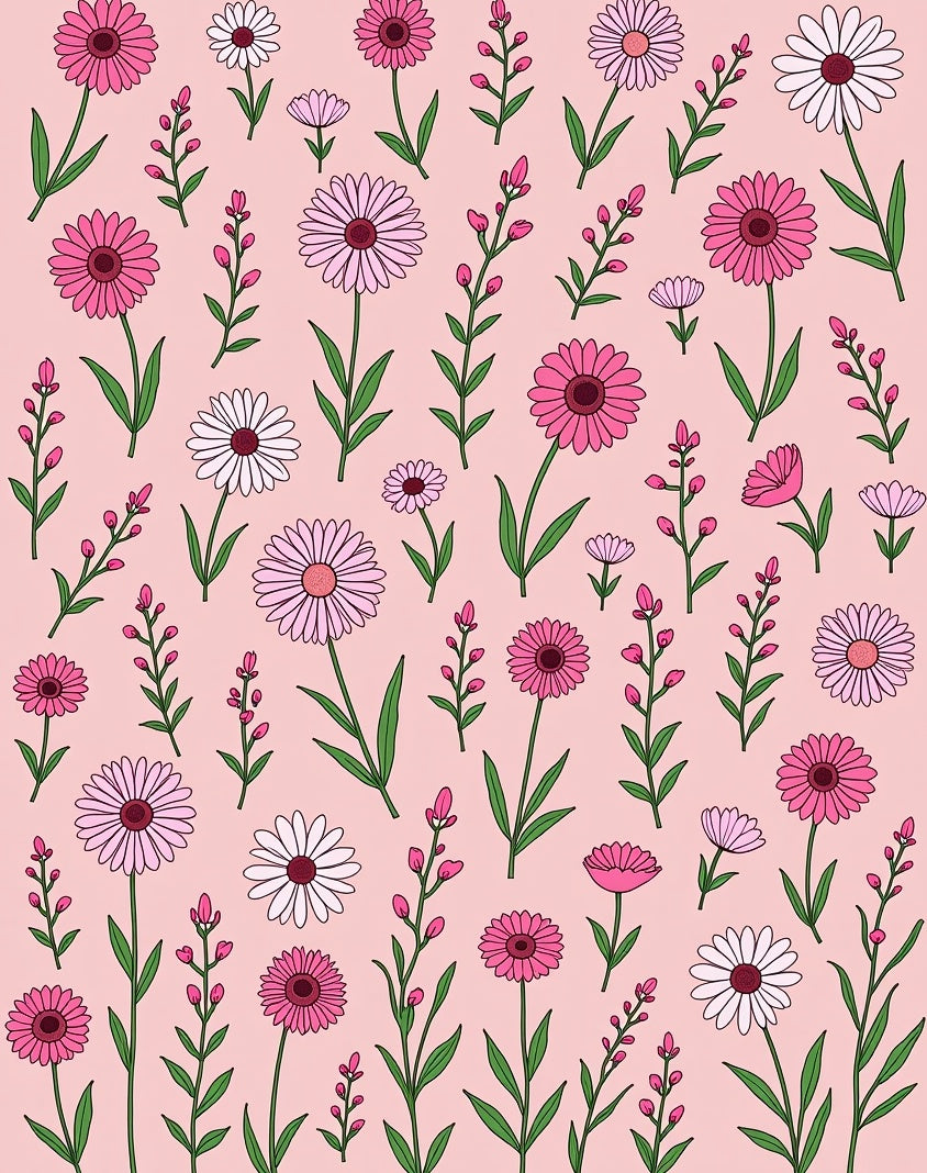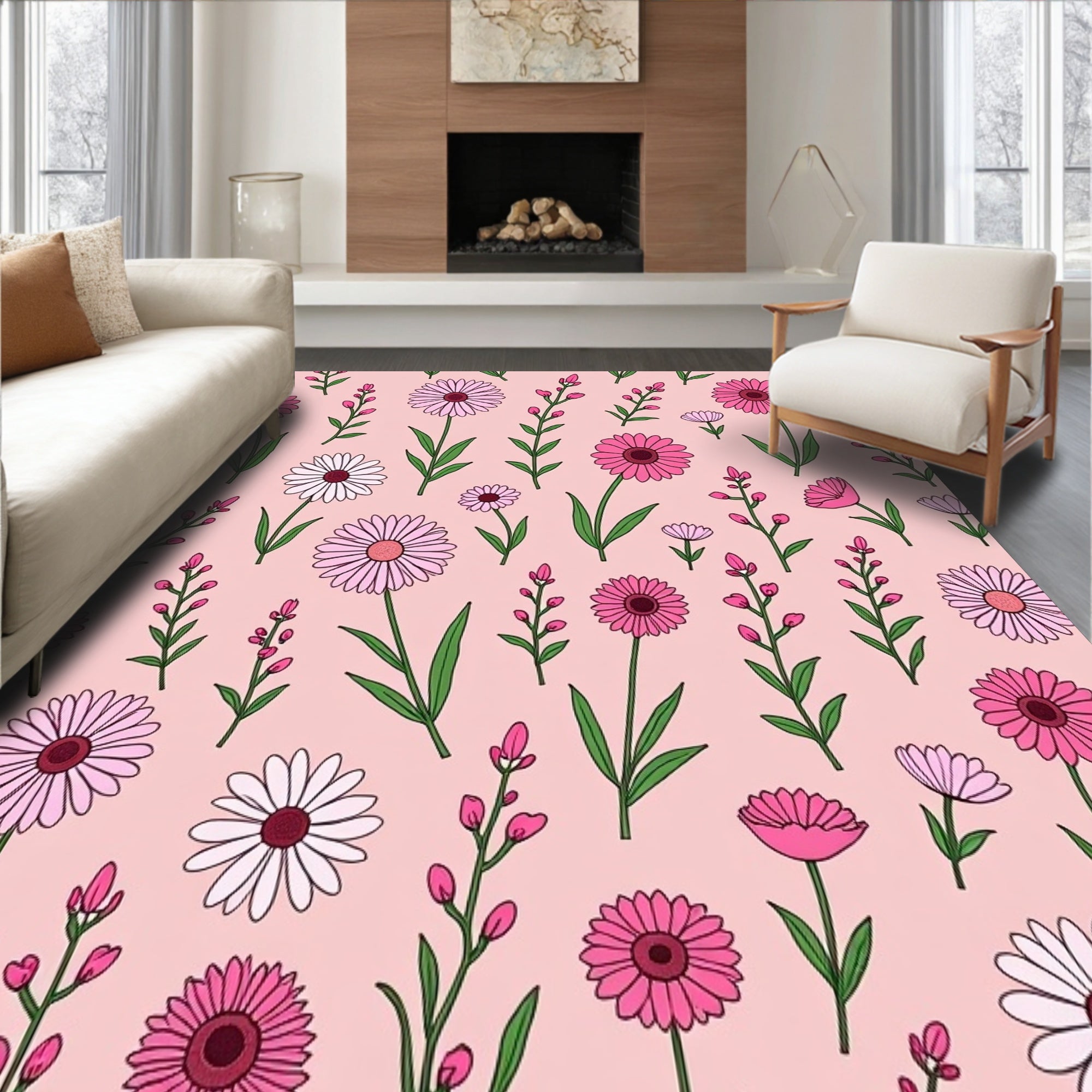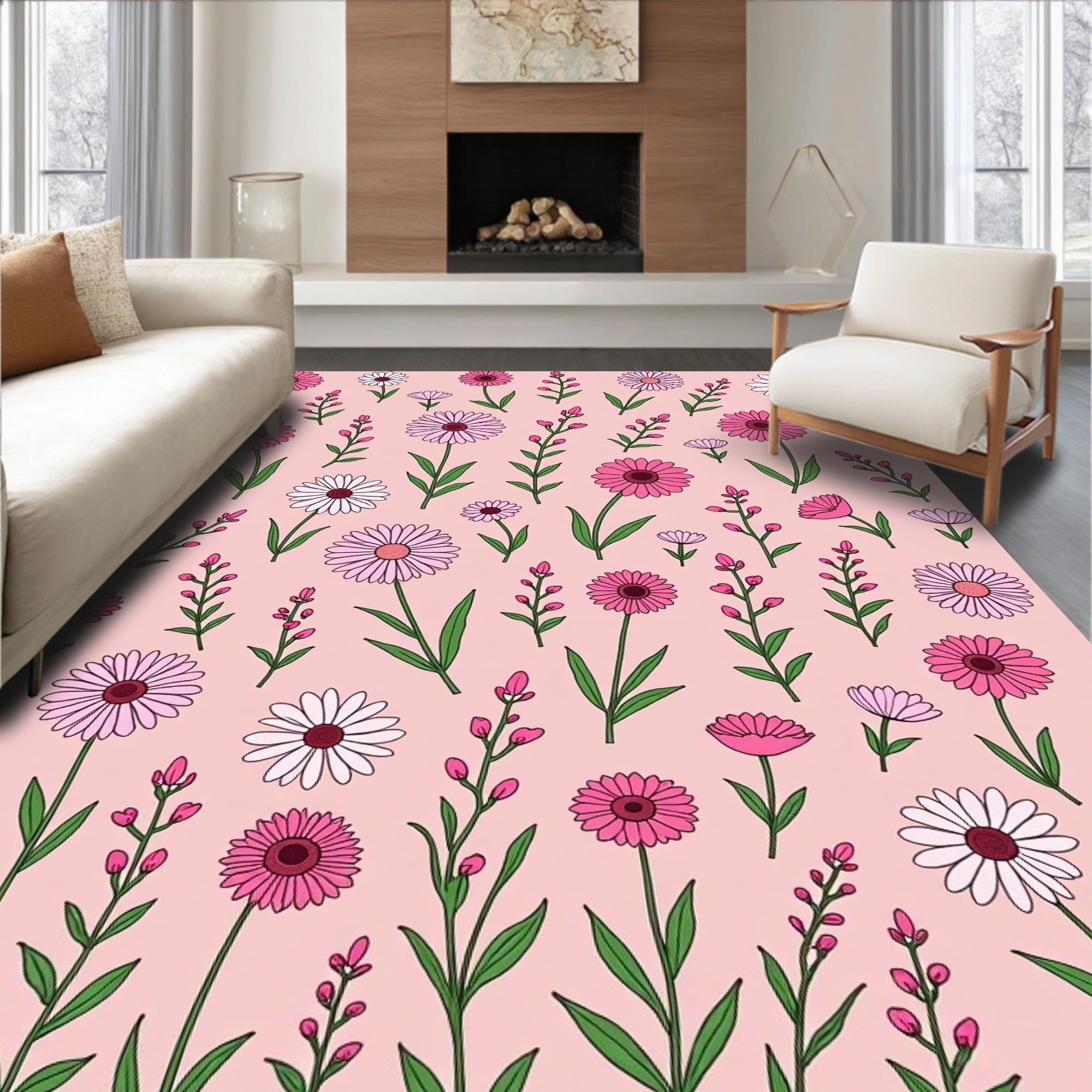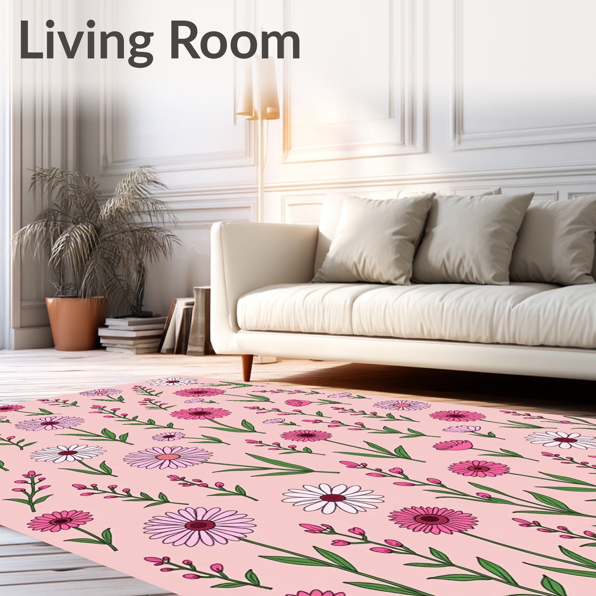 Flatwoven High Traffic Area Rug, Boho Wildflower Meadow Accent, Non Slip, Stain Resistant, Washable Area Rugs for Living Room, Bedroom (Pink) Overview: