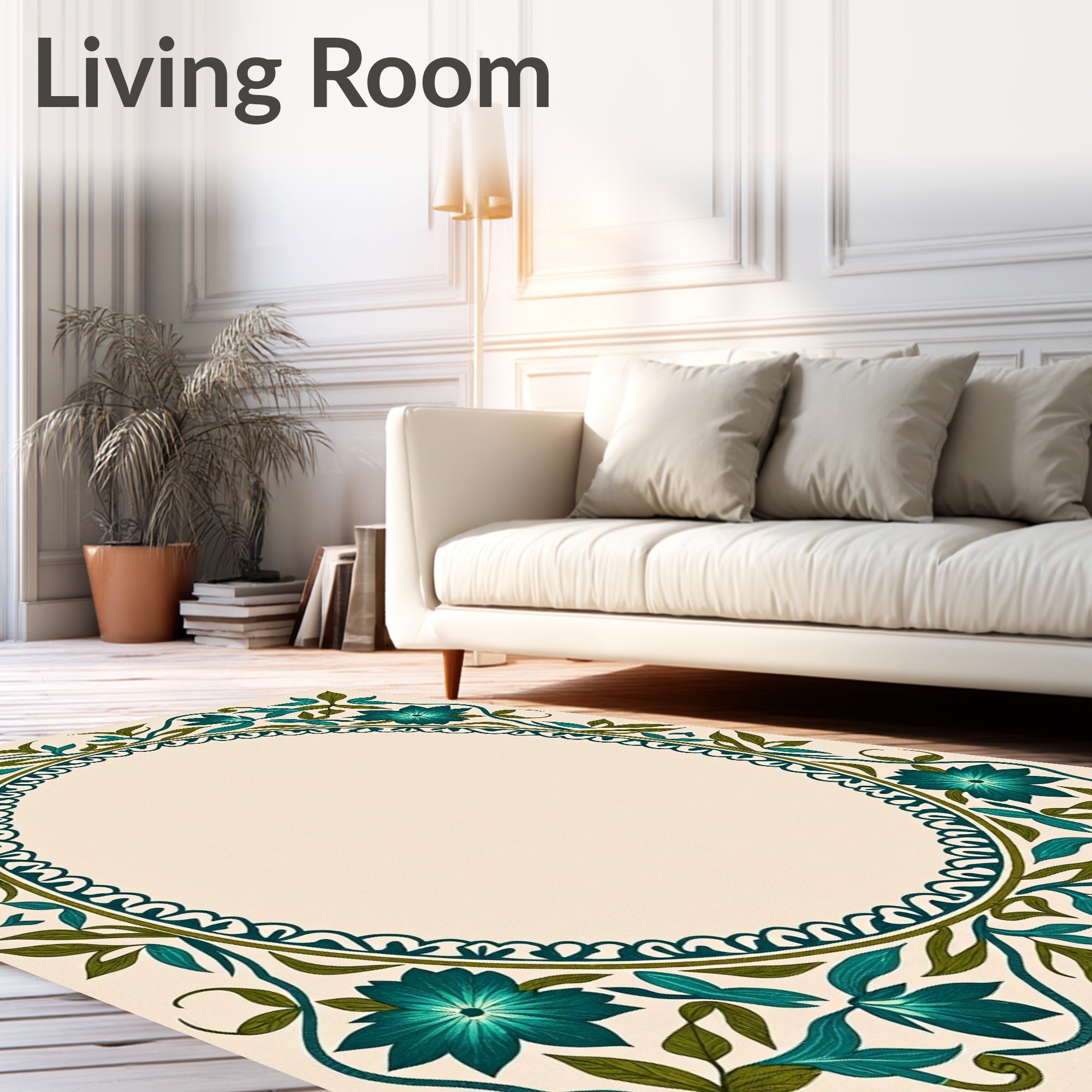 Flatwoven High Traffic Area Rug, Botanical Garden Inspired Floral Vine Edge, Non Slip, Stain Resistant, Washable Area Rugs for Living Room, Bedroom (Beige) Overview: