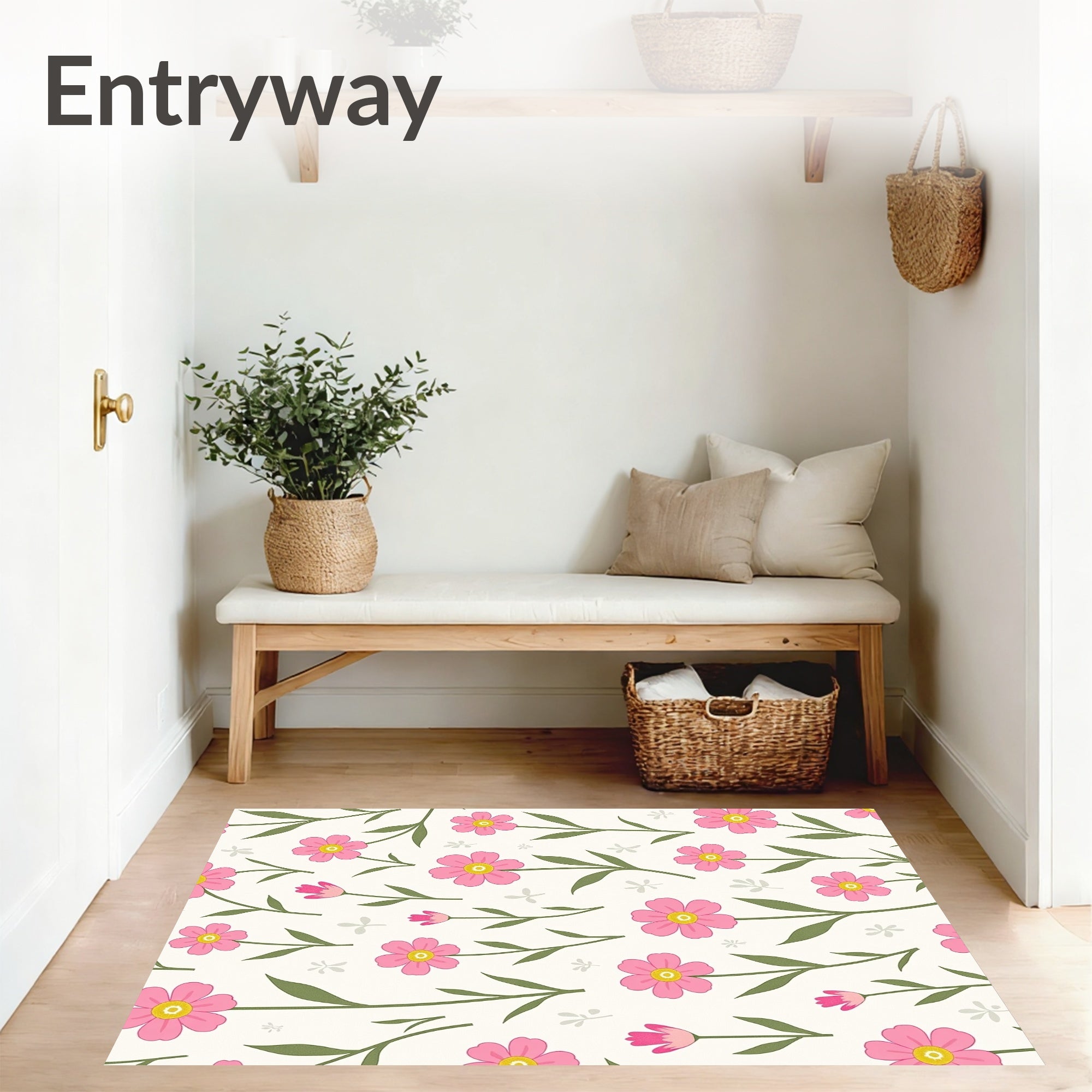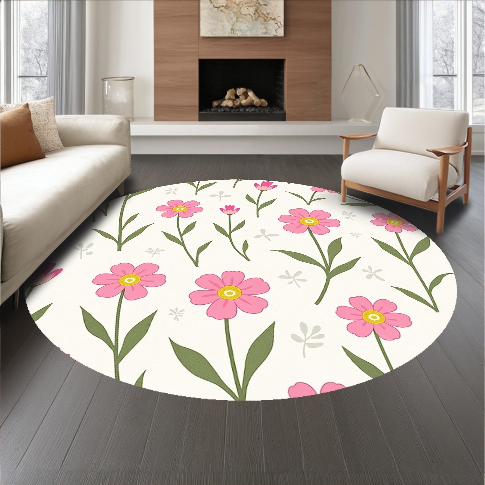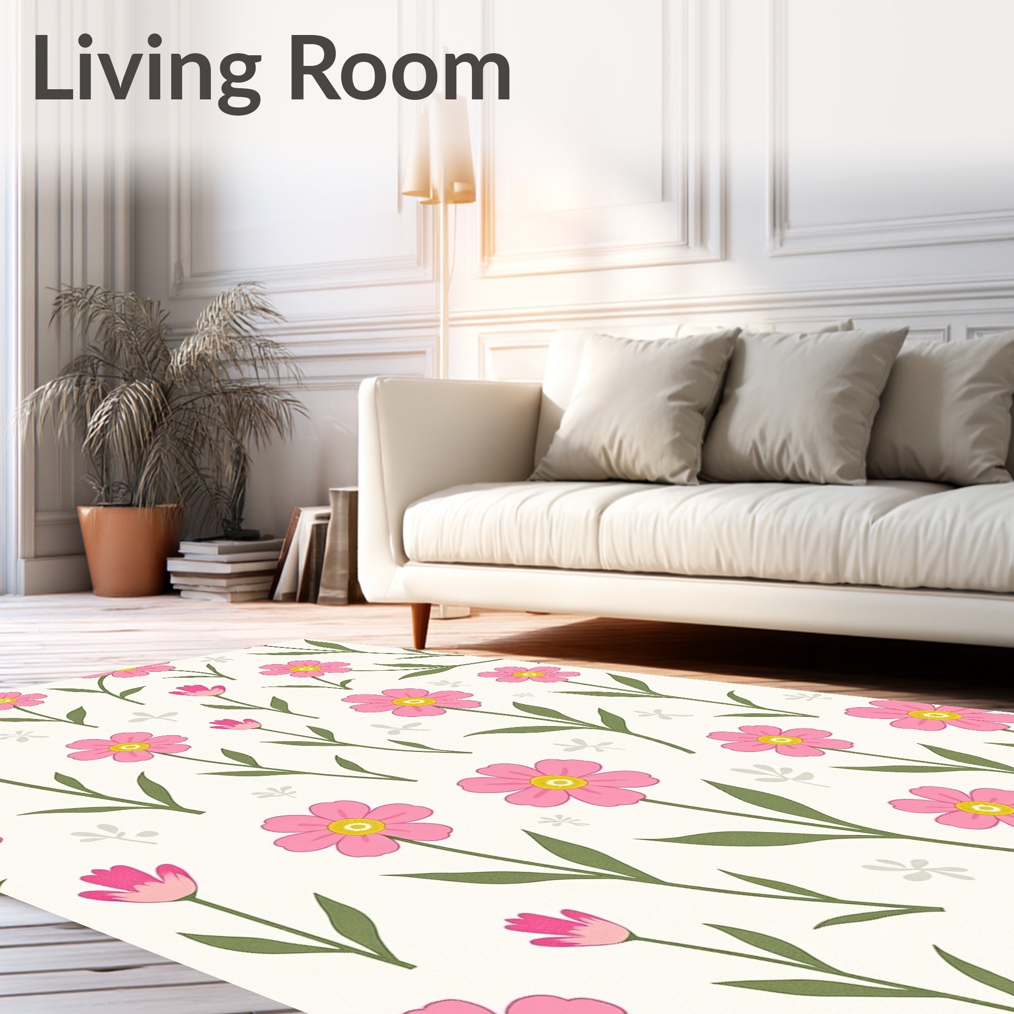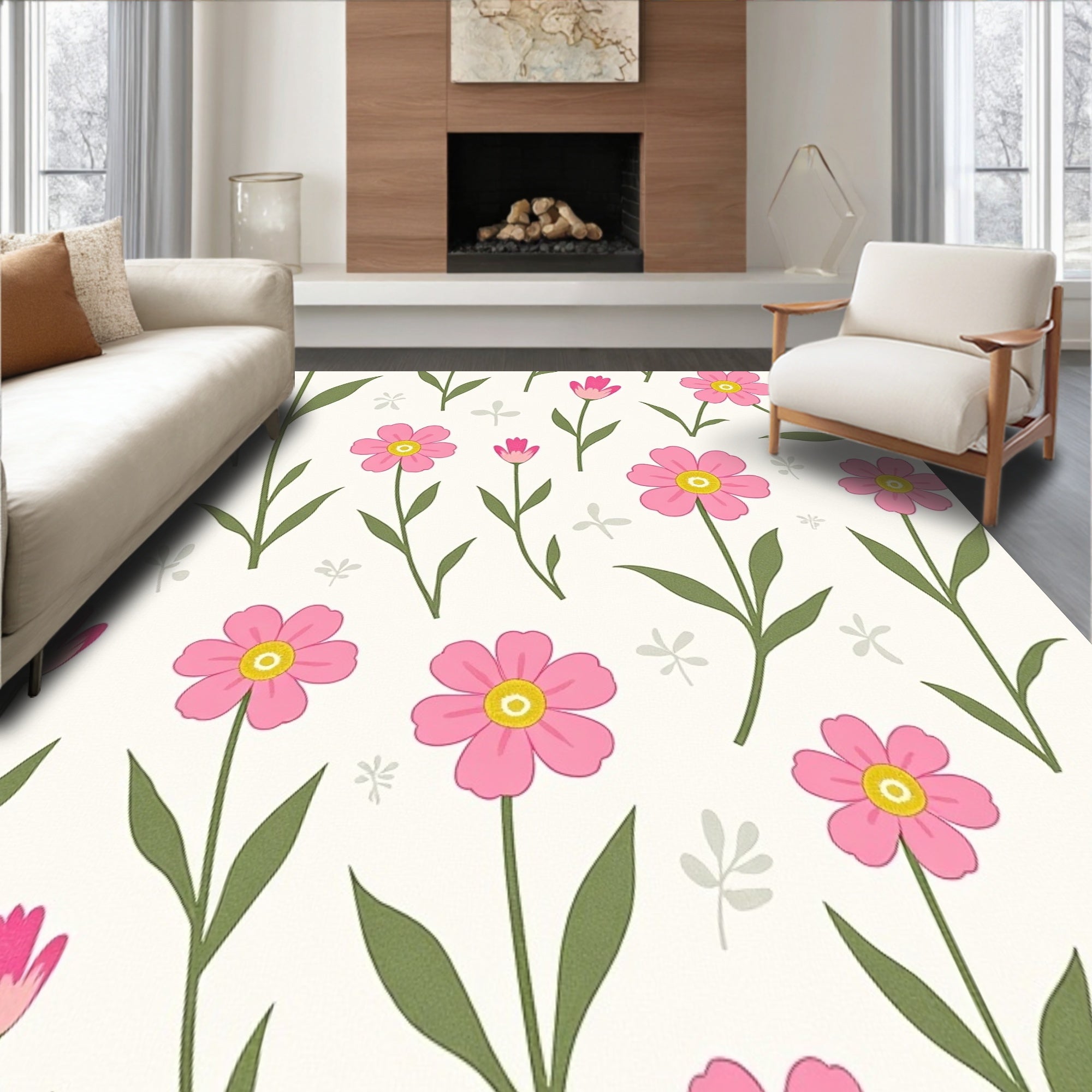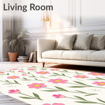 Flatwoven High Traffic Area Rug, Botanical Garden Meadow Blossoms Delicate Whimsical, Non Slip, Stain Resistant, Washable Area Rugs for Living Room, Bedroom (Pink) Overview: