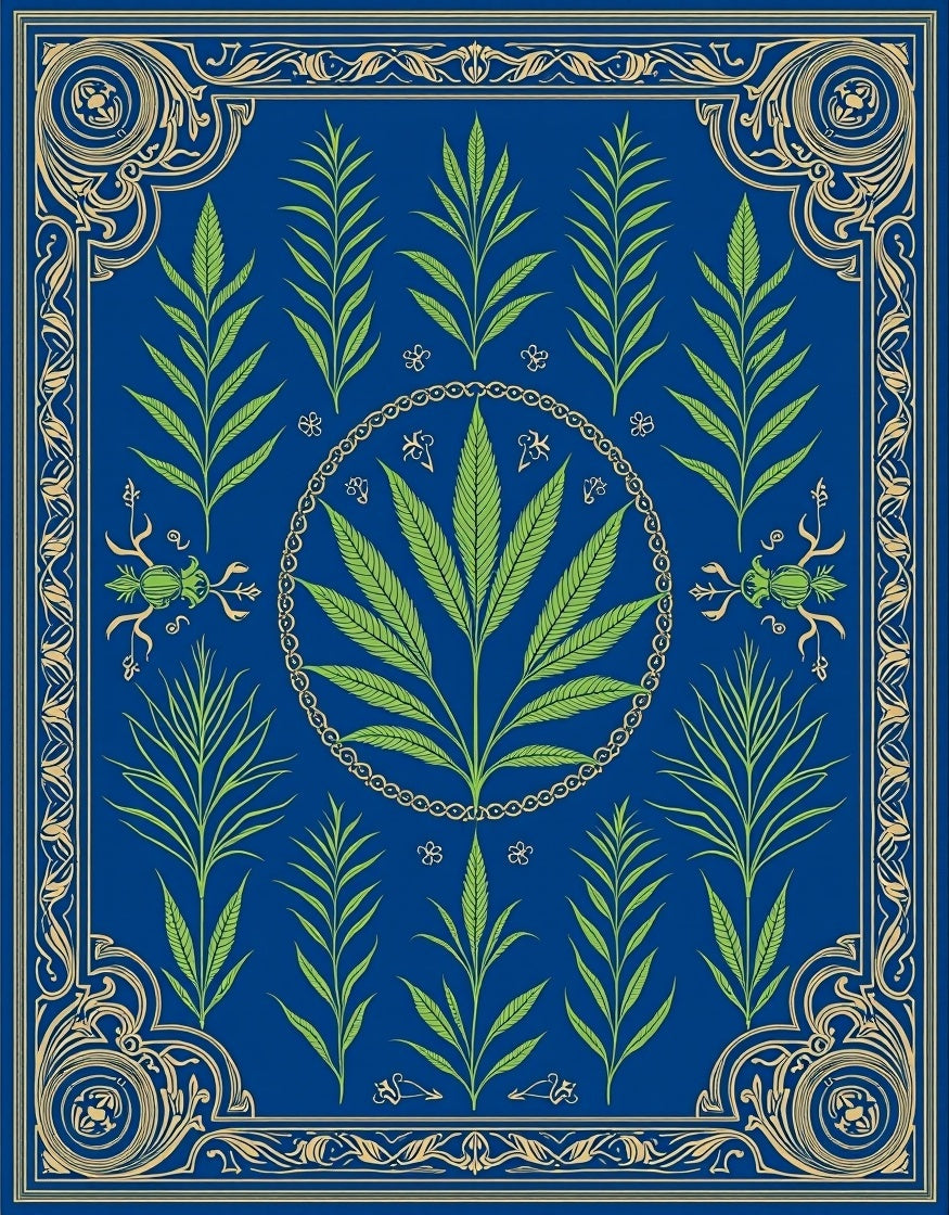 Botanical Insect with Flourishing Ferns and Delicate Beetle Motifs (Blue)