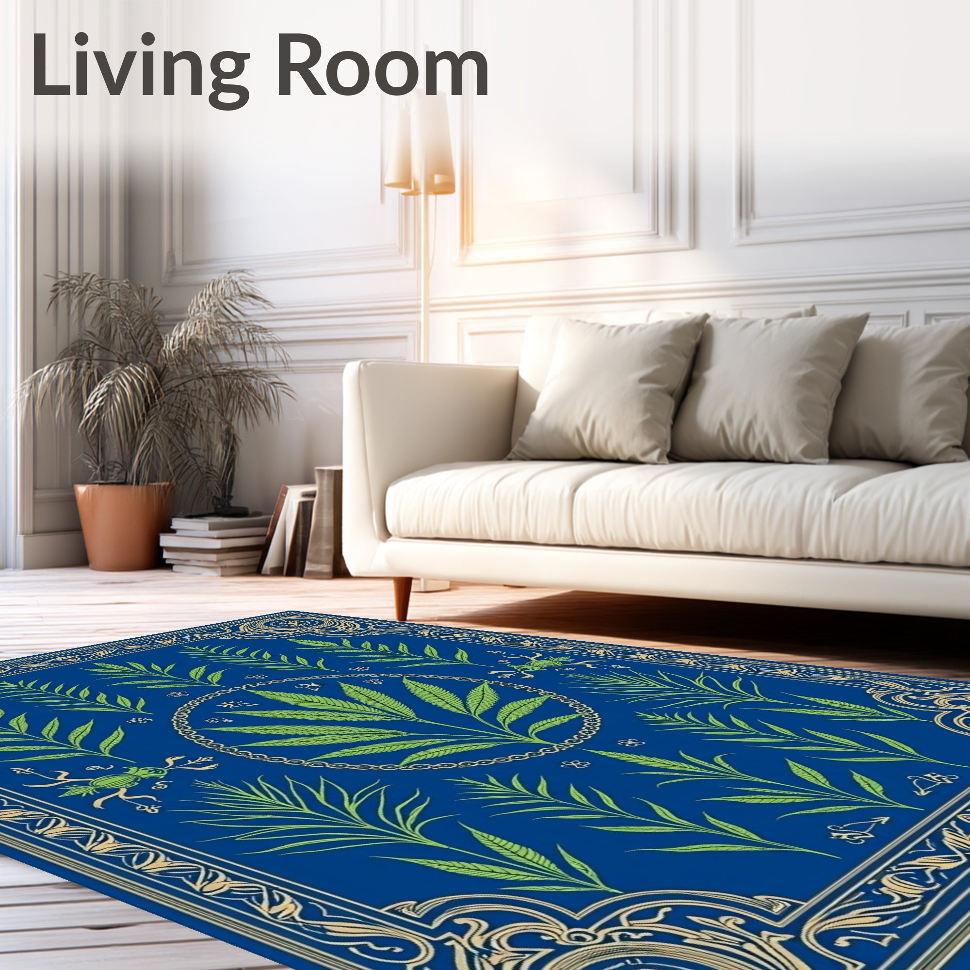 Flatwoven High Traffic Area Rug, Botanical Insect with Flourishing Ferns and Delicate Beetle Motifs, Non Slip, Stain Resistant, Washable Area Rugs for Living Room, Bedroom (Blue) Overview: