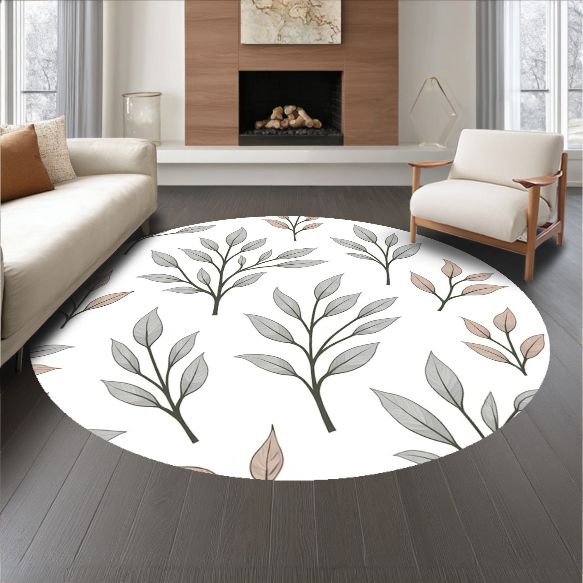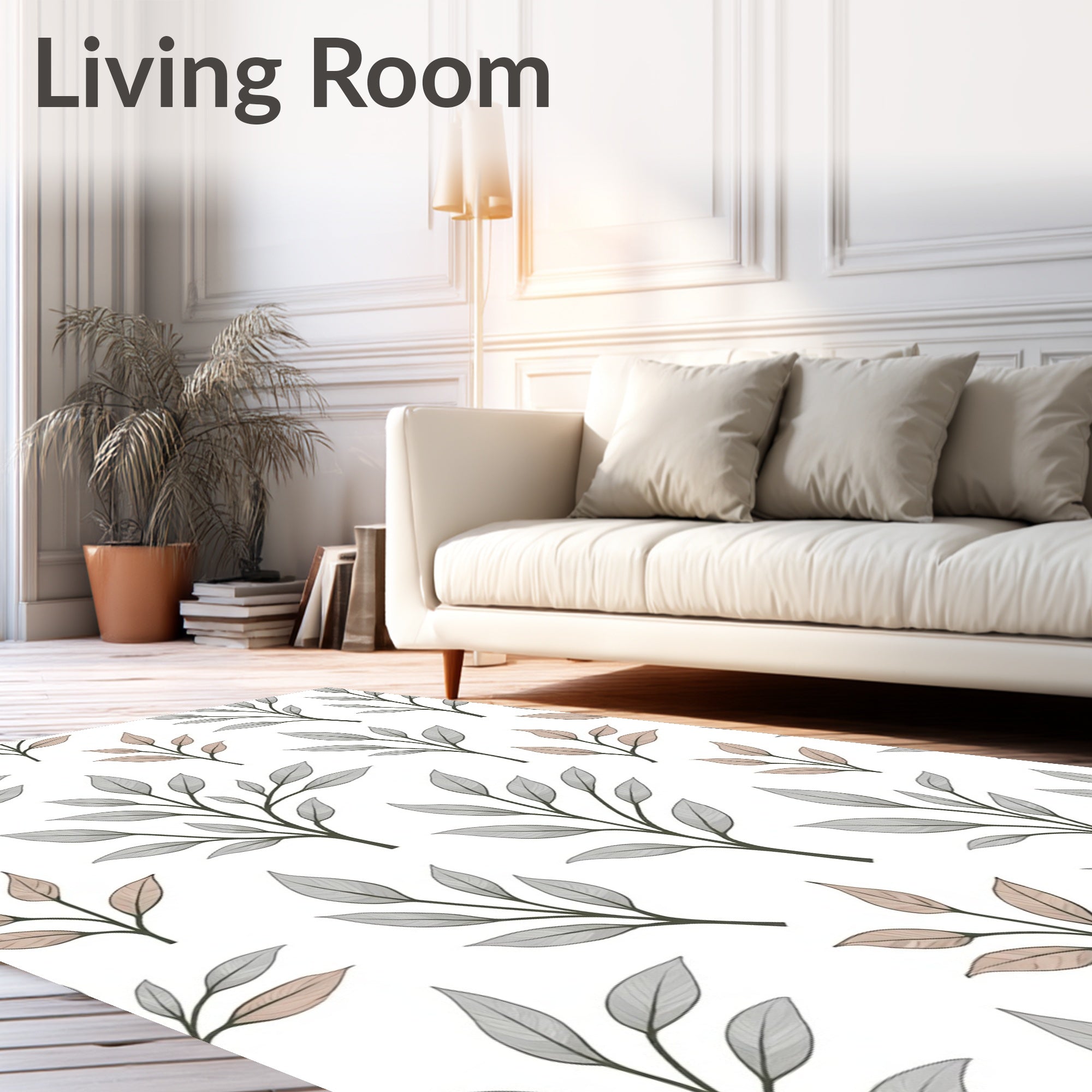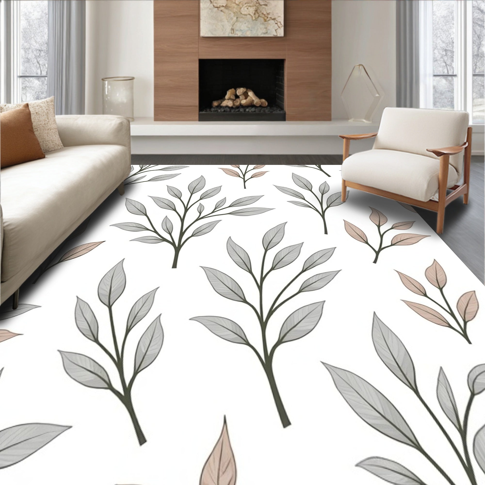 Botanical Leaf Anti Slip Floor Covering Boho (Gray)