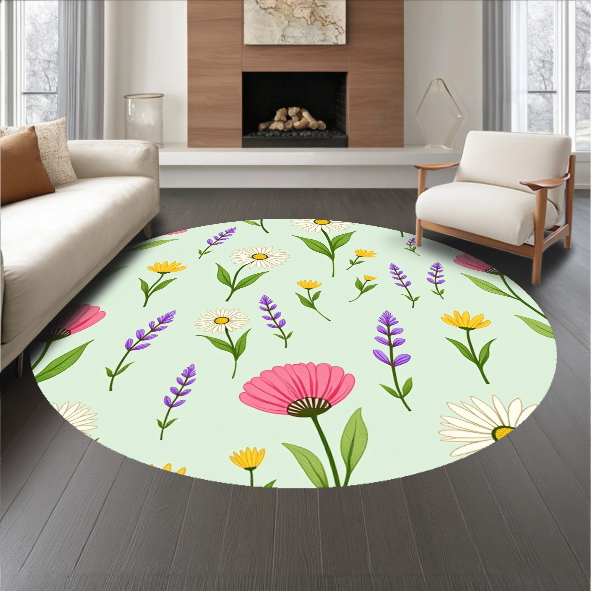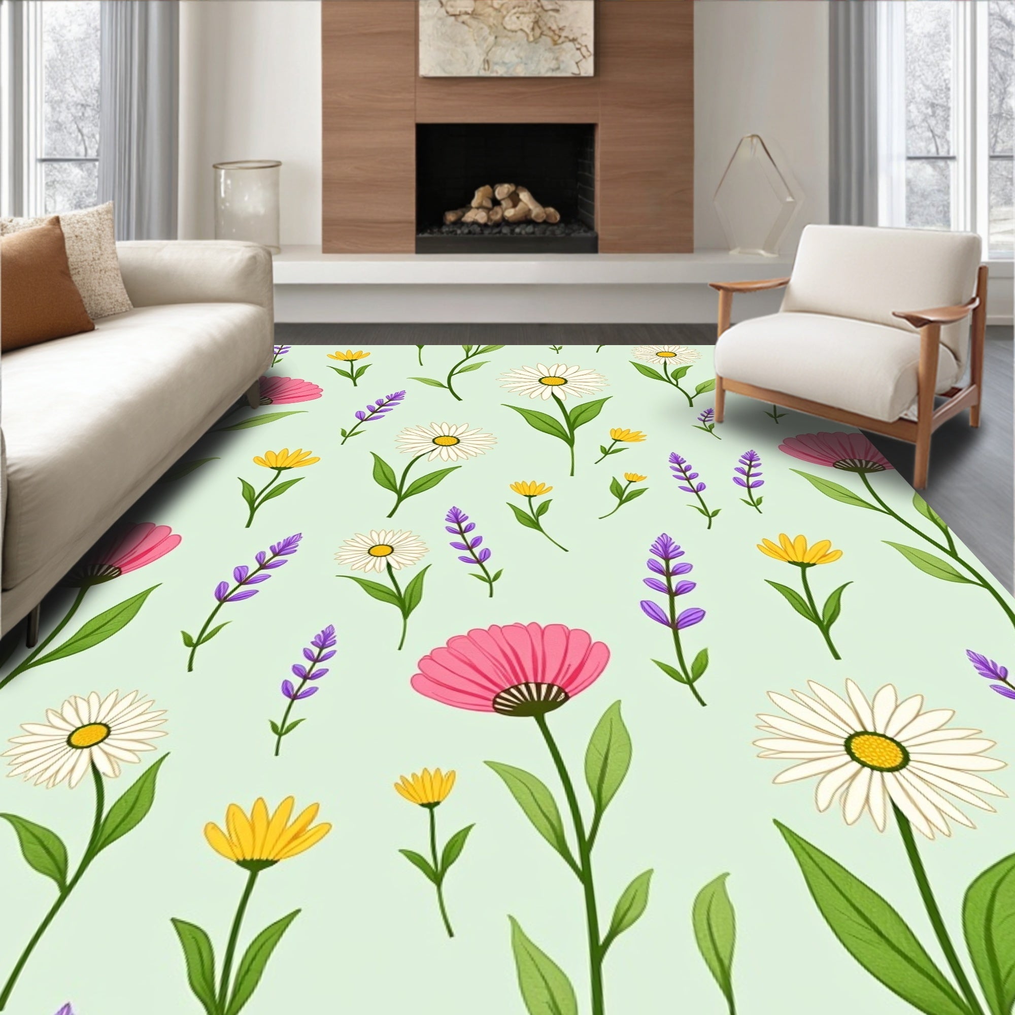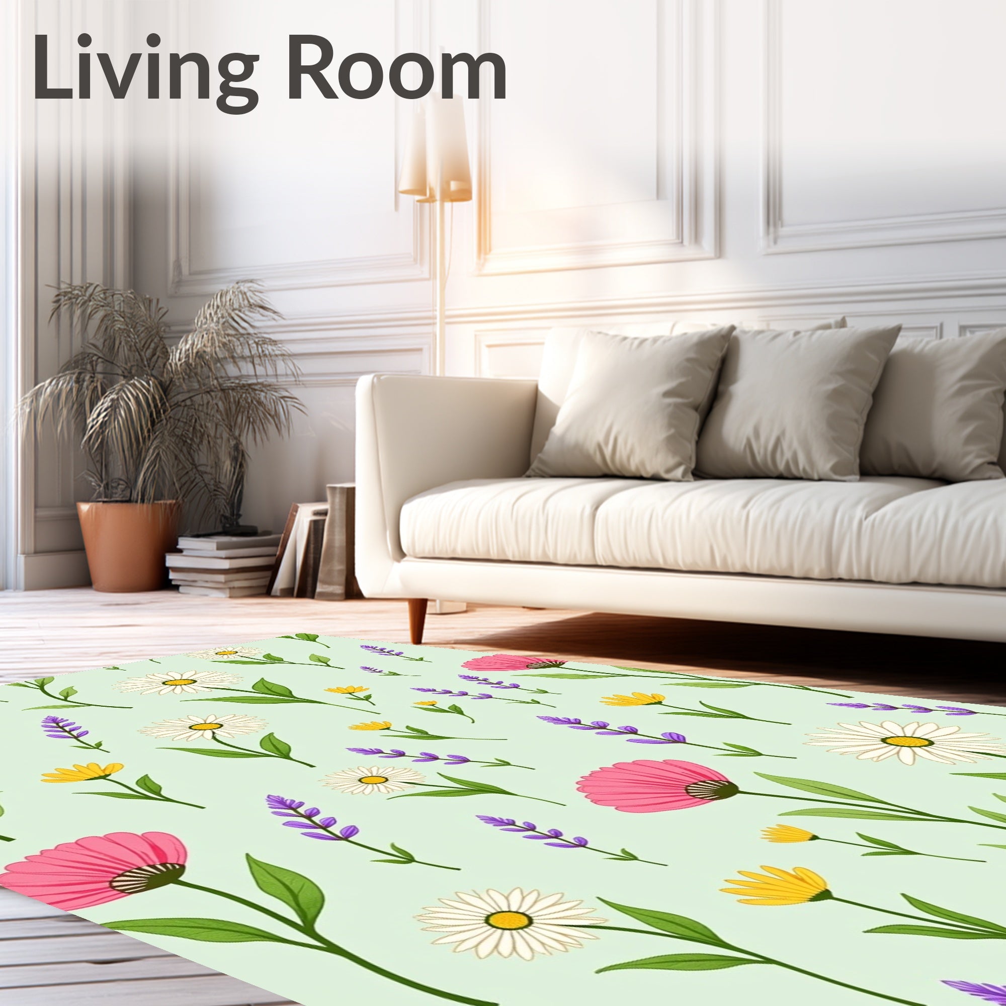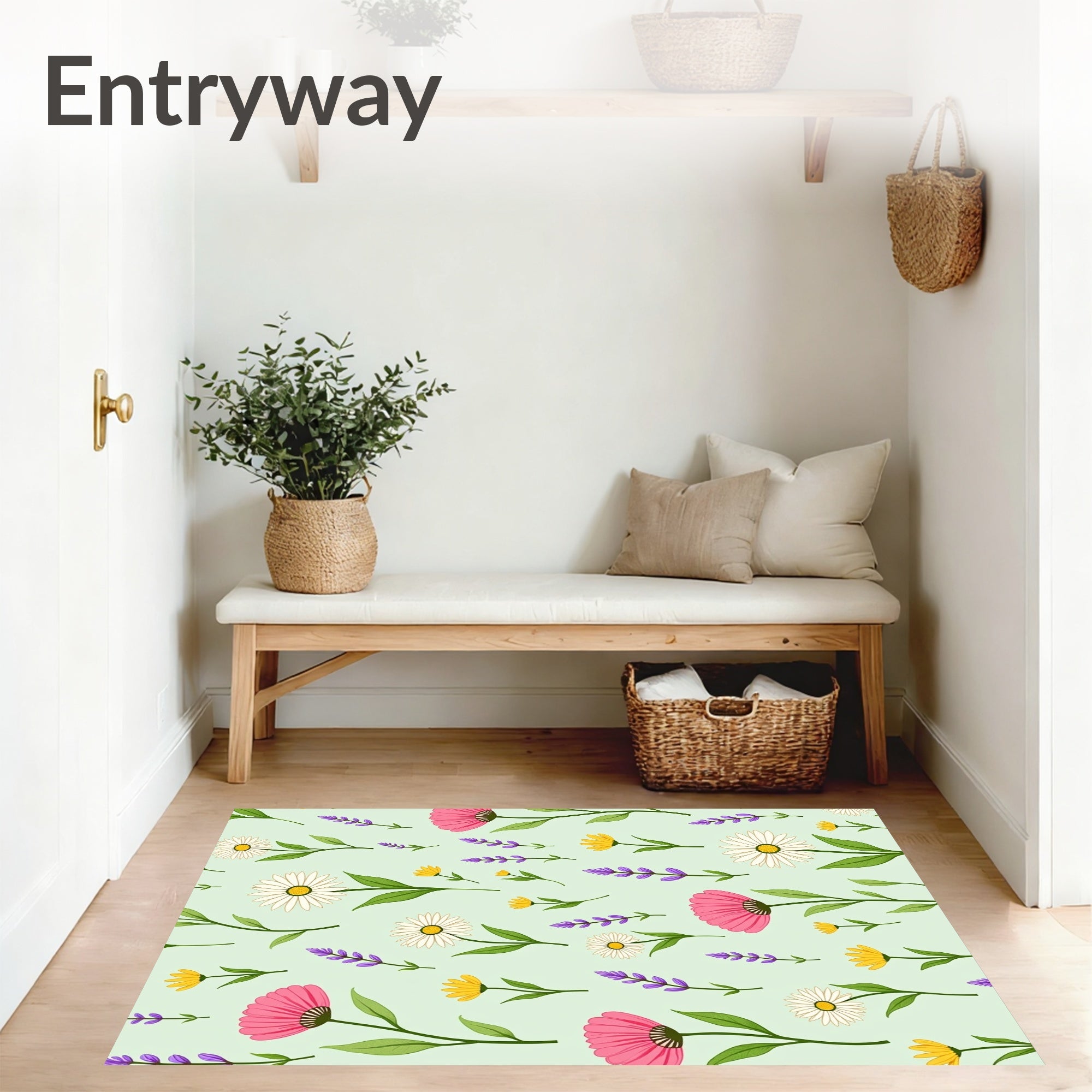 Flatwoven High Traffic Area Rug, Botanical Meadow Wildflower Tapestry Accent, Non Slip, Stain Resistant, Washable Area Rugs for Living Room, Bedroom (Green) Overview: