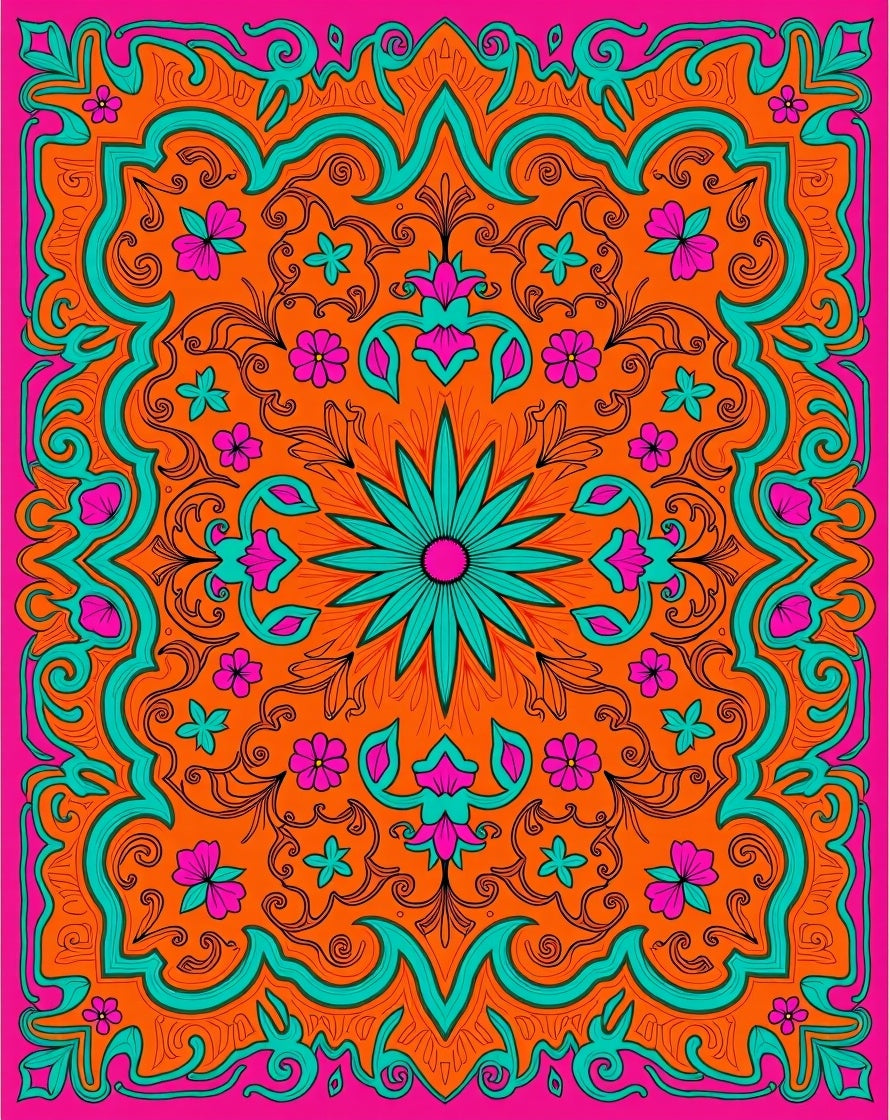 Botanical Medallion Motif with Interlocking Vine and Blossom Accents (Orange)