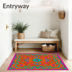 Flatwoven High Traffic Area Rug, Botanical Medallion Motif with Interlocking Vine and Blossom Accents, Non Slip, Stain Resistant, Washable Area Rugs for Living Room, Bedroom (Orange) Overview: