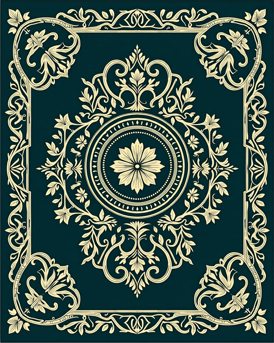 Botanical Medallion Scrollwork with Delicate Foliage Vines (Green)