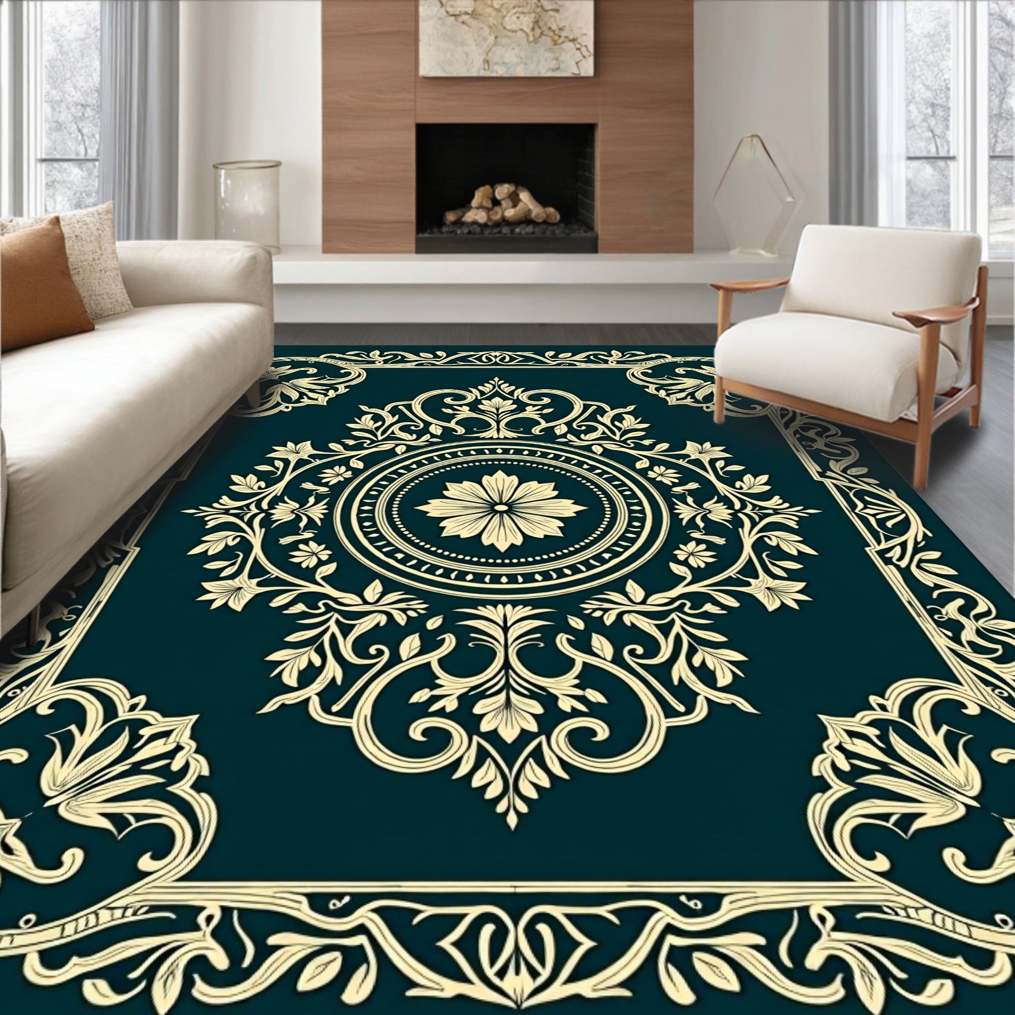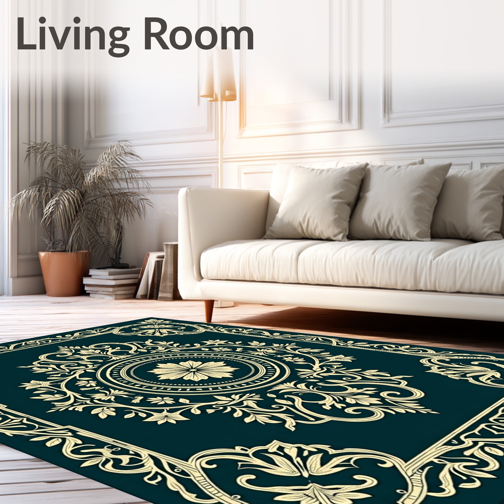 Flatwoven High Traffic Area Rug, Botanical Medallion Scrollwork with Delicate Foliage Vines, Non Slip, Stain Resistant, Washable Area Rugs for Living Room, Bedroom (Green) Overview: