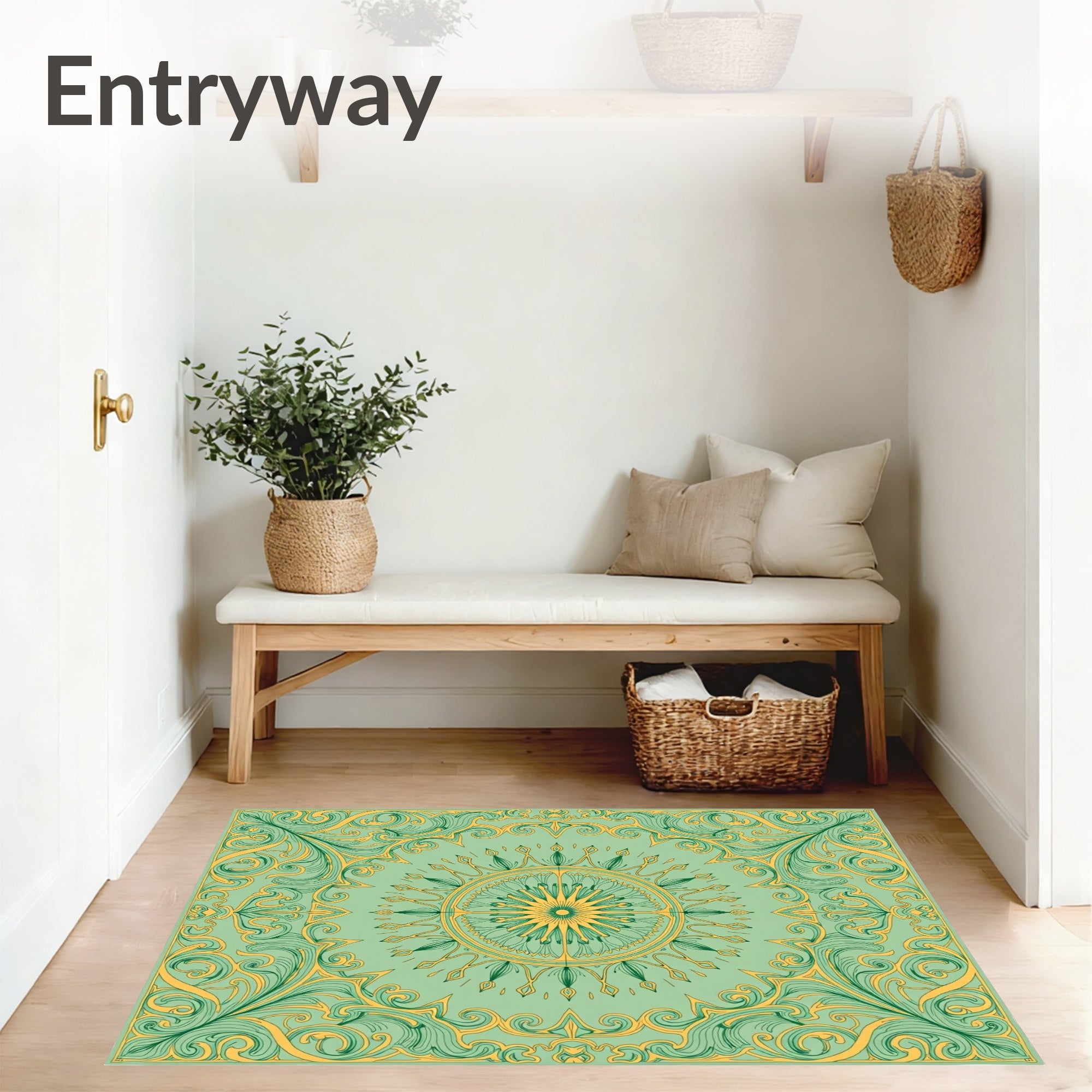 Flatwoven High Traffic Area Rug, Botanical Paisley Enchanted Swirl Abstract Decorative, Non Slip, Stain Resistant, Washable Area Rugs for Living Room, Bedroom (Green) Overview:
