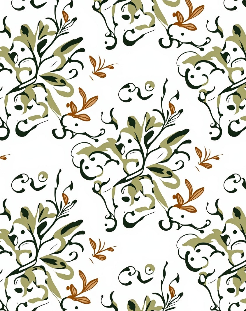 Botanical Vine Scroll with Natural Leaf Accent (White)
