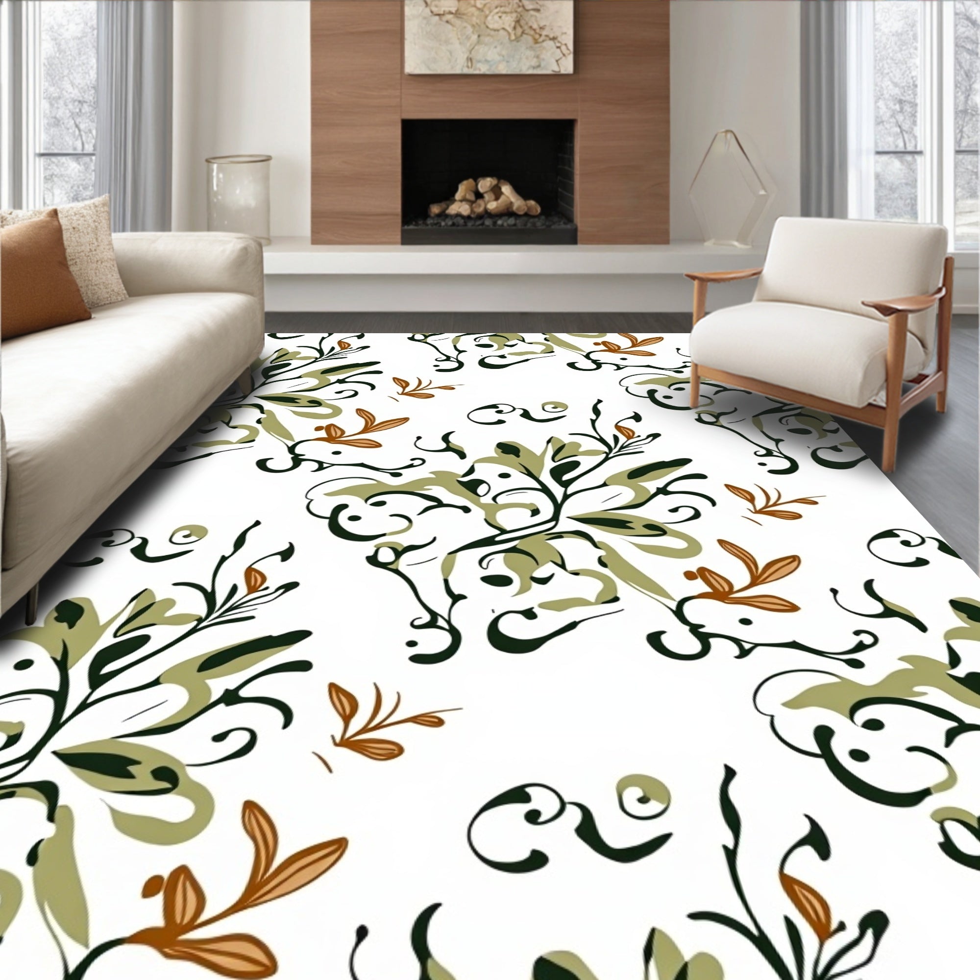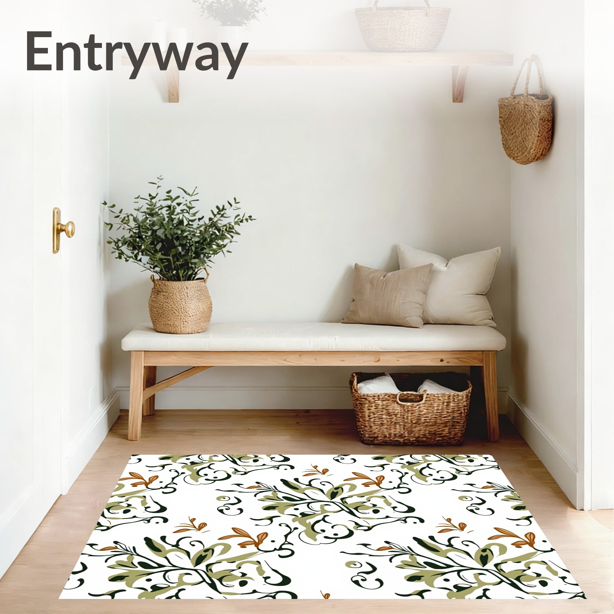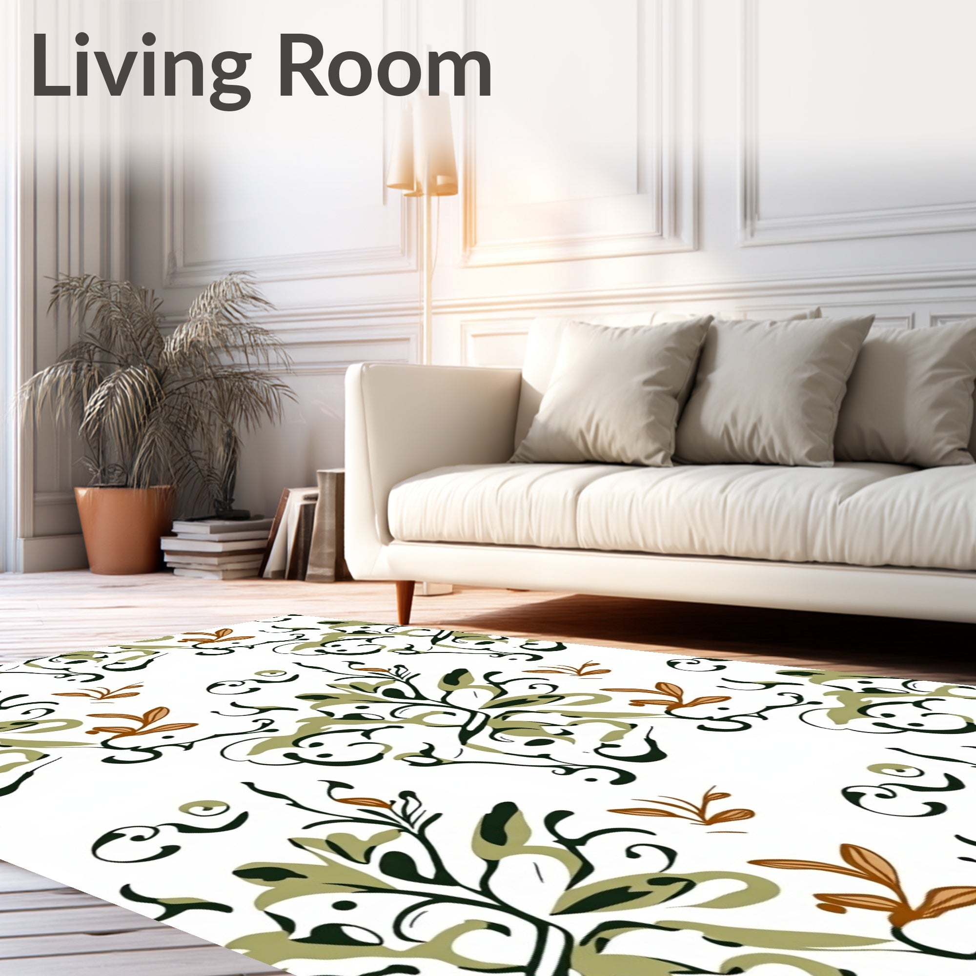 Flatwoven High Traffic Area Rug, Botanical Vine Scroll with Natural Leaf Accent, Non Slip, Stain Resistant, Washable Area Rugs for Living Room, Bedroom (White) Overview: