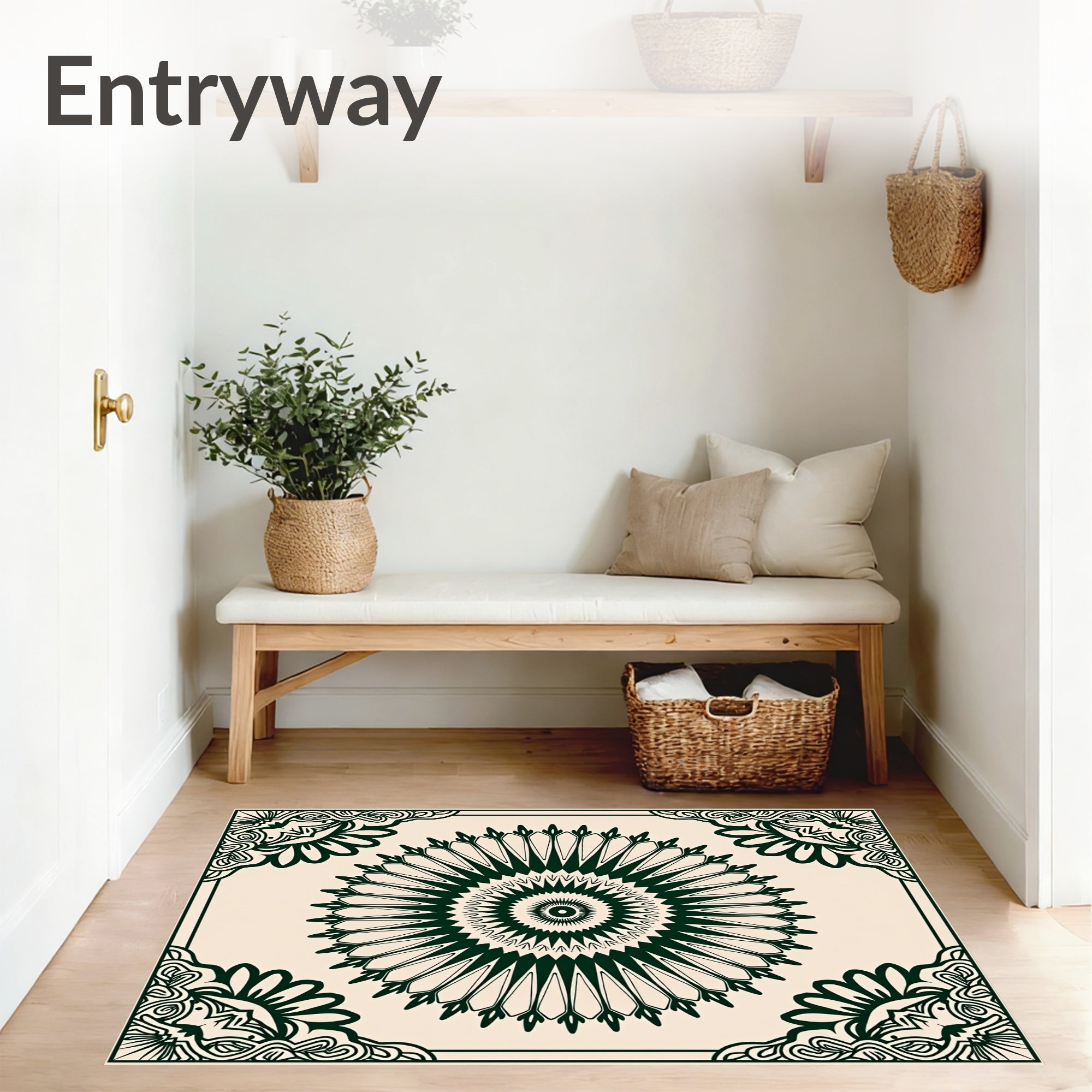 Flatwoven High Traffic Area Rug, Burst with Intricate Petal Details, Non Slip, Stain Resistant, Washable Area Rugs for Living Room, Bedroom (Green) Overview: