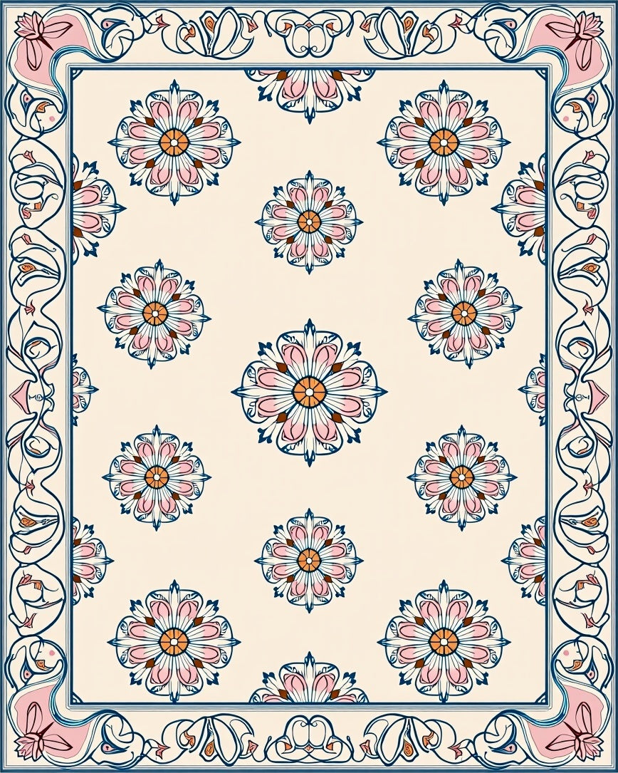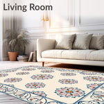 Flatwoven High Traffic Area Rug, Celestial Bloom Abstract Floral Interlocking Medallion Motif, Non Slip, Stain Resistant, Washable Area Rugs for Living Room, Bedroom (Beige) Overview: