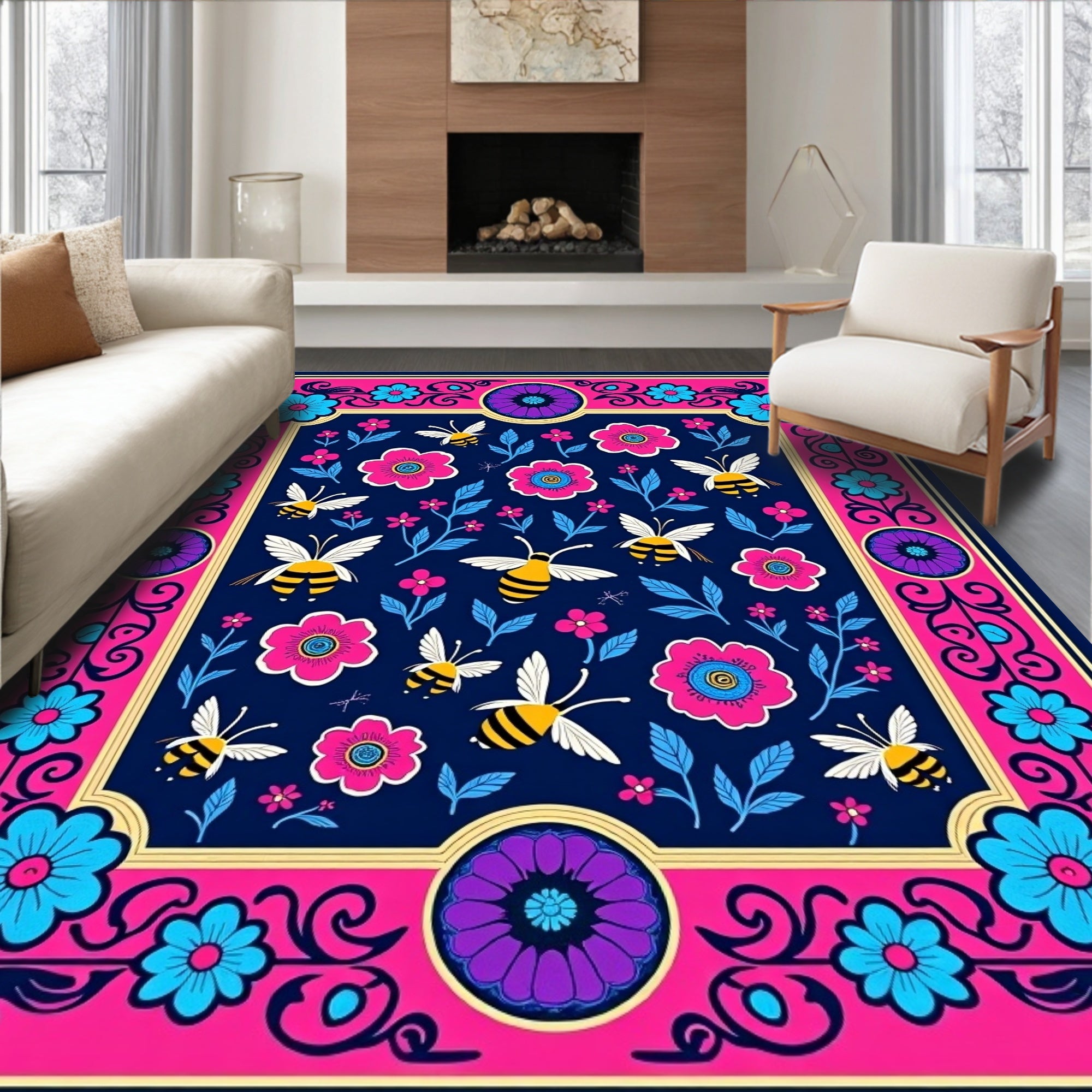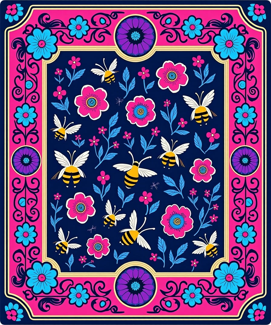 Flatwoven High Traffic Area Rug, Celestial Blossom Honeybee Swirl Vintage Eclectic Illustration, Non Slip, Stain Resistant, Washable Area Rugs for Living Room, Bedroom (Pink) Overview: