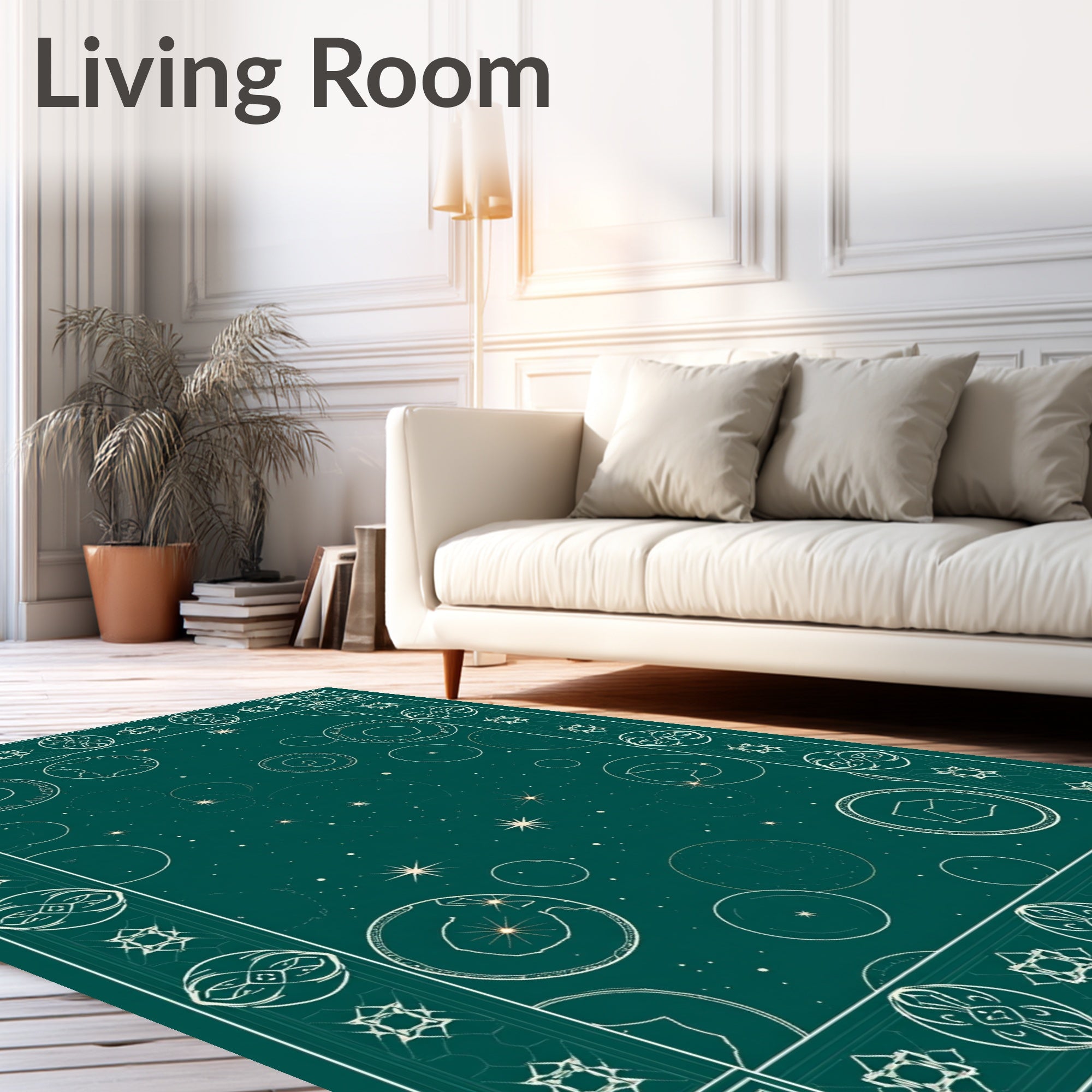 Flatwoven High Traffic Area Rug, Celestial Constellation Galaxy Starry Night Accent, Non Slip, Stain Resistant, Washable Area Rugs for Living Room, Bedroom (Green) Overview: