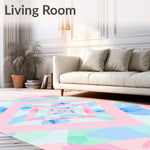 Flatwoven High Traffic Area Rug, Celestial Fade Interlocking and Watercolor Patchwork, Non Slip, Stain Resistant, Washable Area Rugs for Living Room, Bedroom (Pink) Overview: