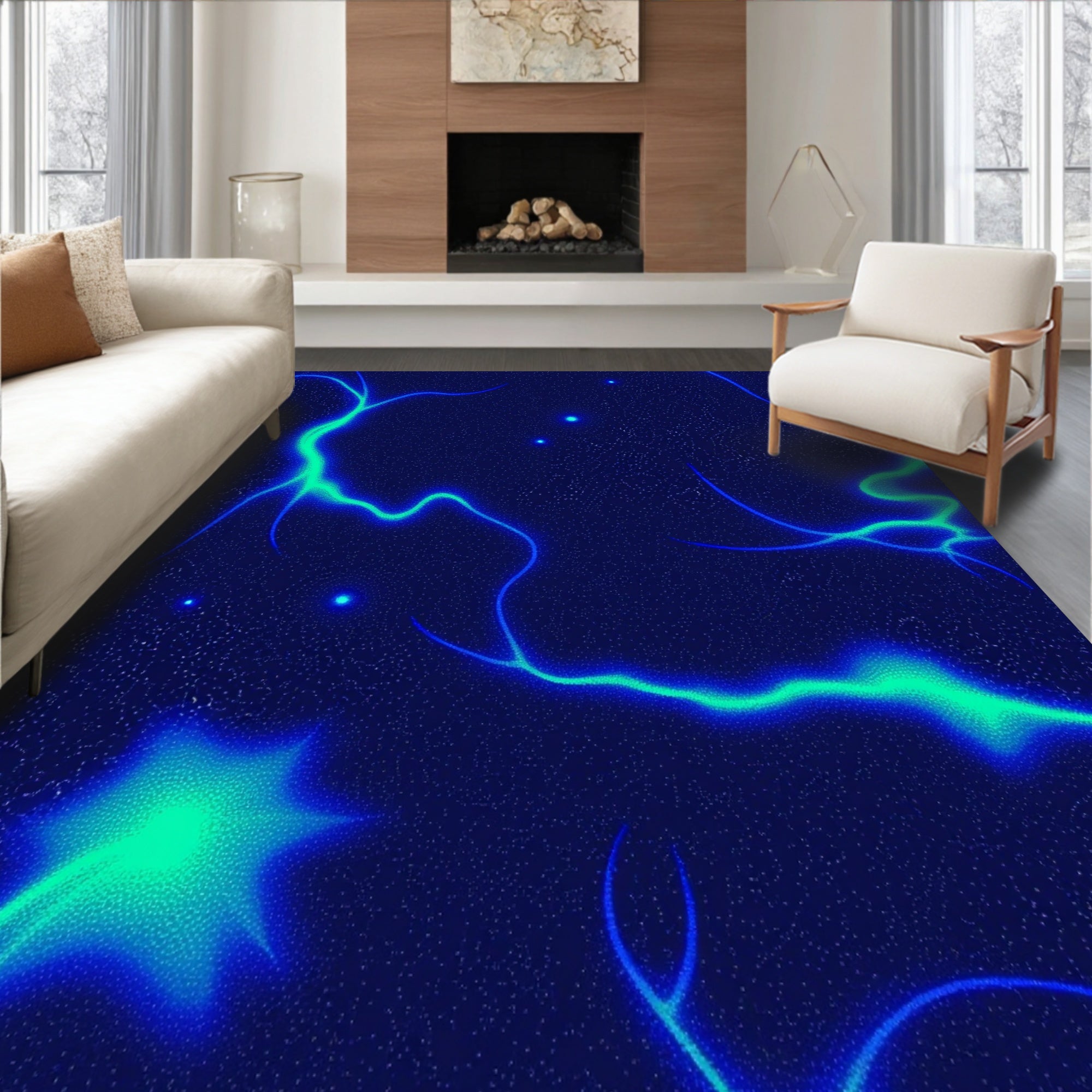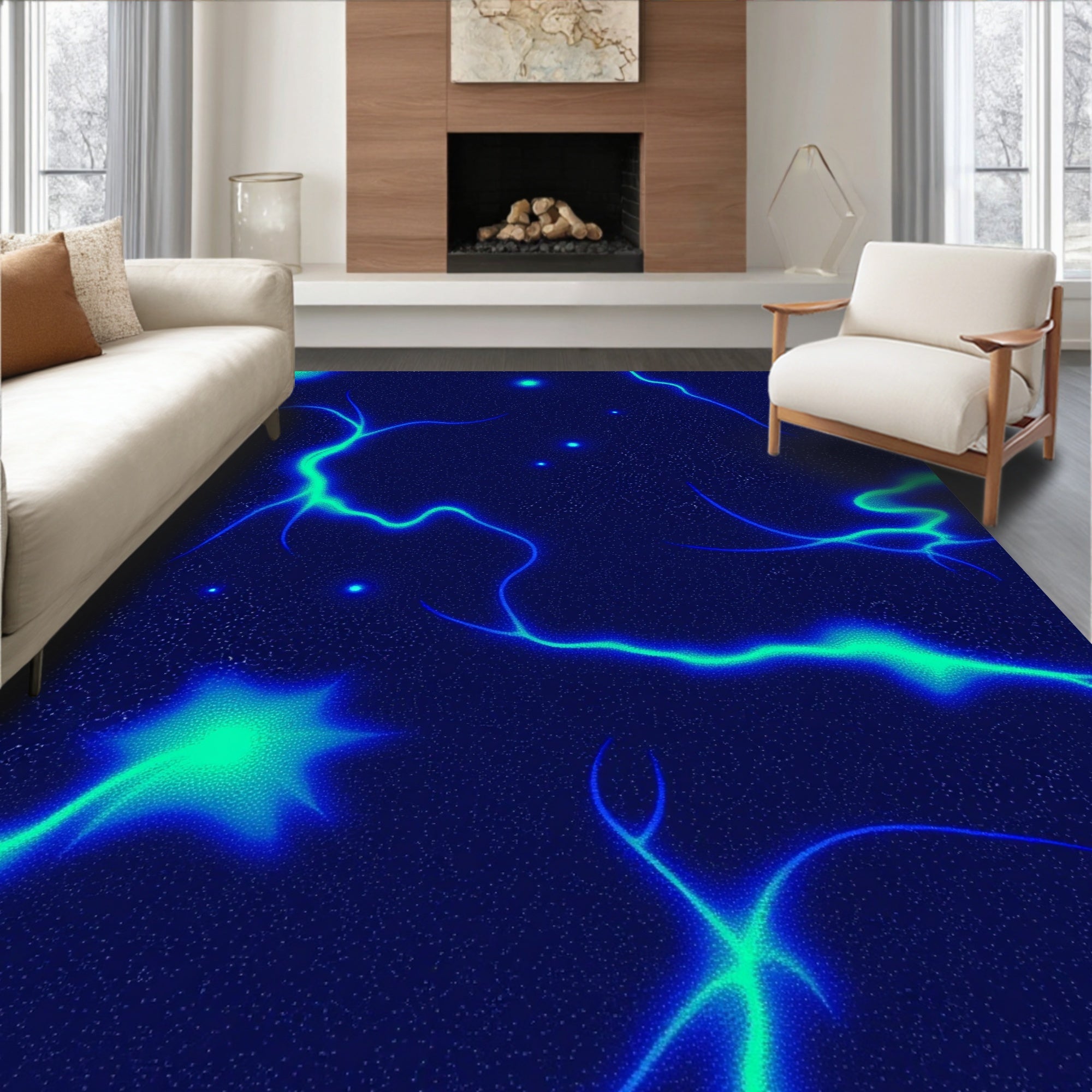 Flatwoven High Traffic Area Rug, Celestial Galaxy Nebula Stardust Constellation Astronomy, Non Slip, Stain Resistant, Washable Area Rugs for Living Room, Bedroom (Blue) Overview: