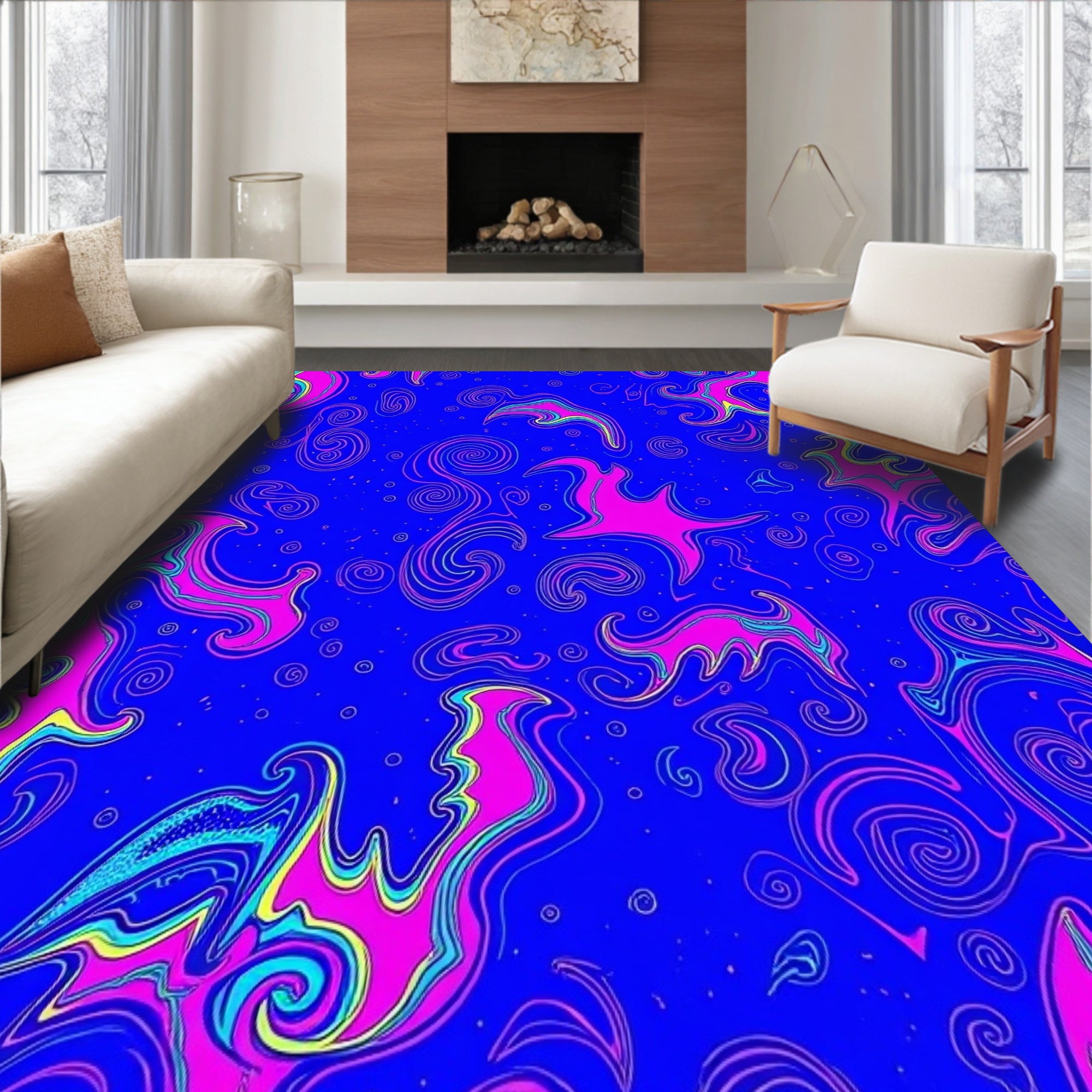 Flatwoven High Traffic Area Rug, Celestial Nebula Cosmic Swirl Decorative Artistic, Non Slip, Stain Resistant, Washable Area Rugs for Living Room, Bedroom (Blue) Overview: