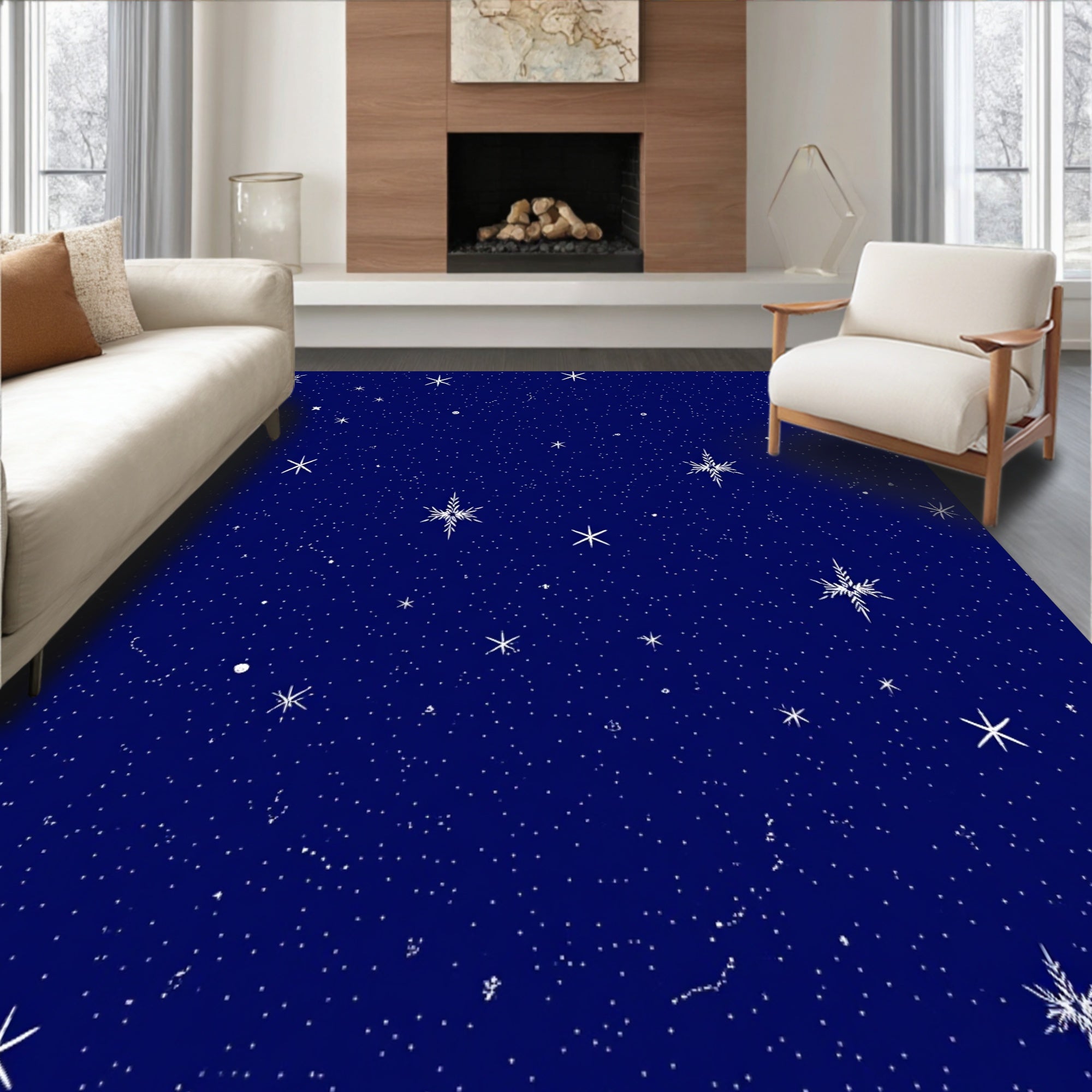 Flatwoven High Traffic Area Rug, Celestial Night Sky Twinkling Constellation Decorative Floor, Non Slip, Stain Resistant, Washable Area Rugs for Living Room, Bedroom (Blue) Overview: