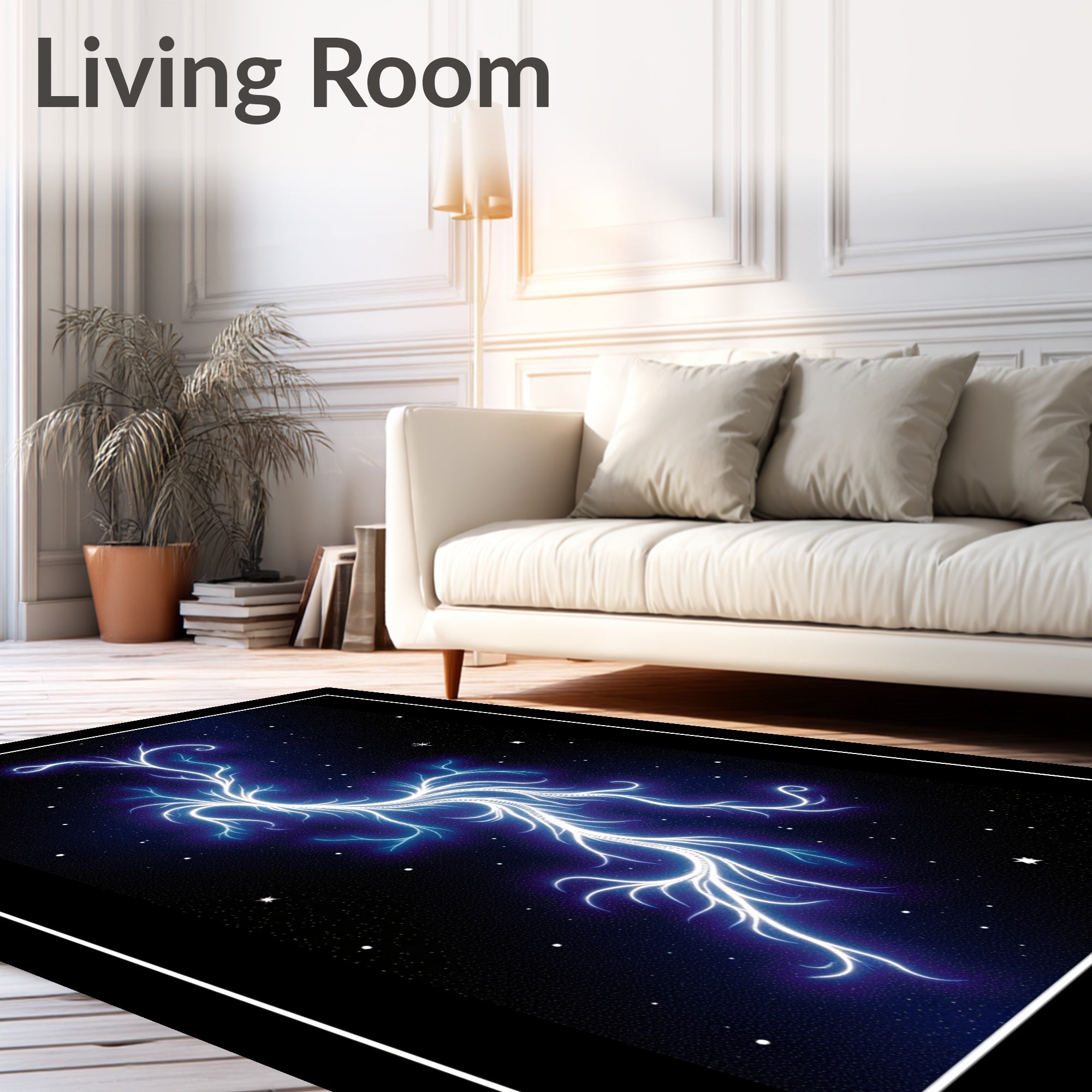Flatwoven High Traffic Area Rug, Celestial Pathway with Starlight Motifs, Non Slip, Stain Resistant, Washable Area Rugs for Living Room, Bedroom (Blue) Overview: