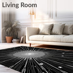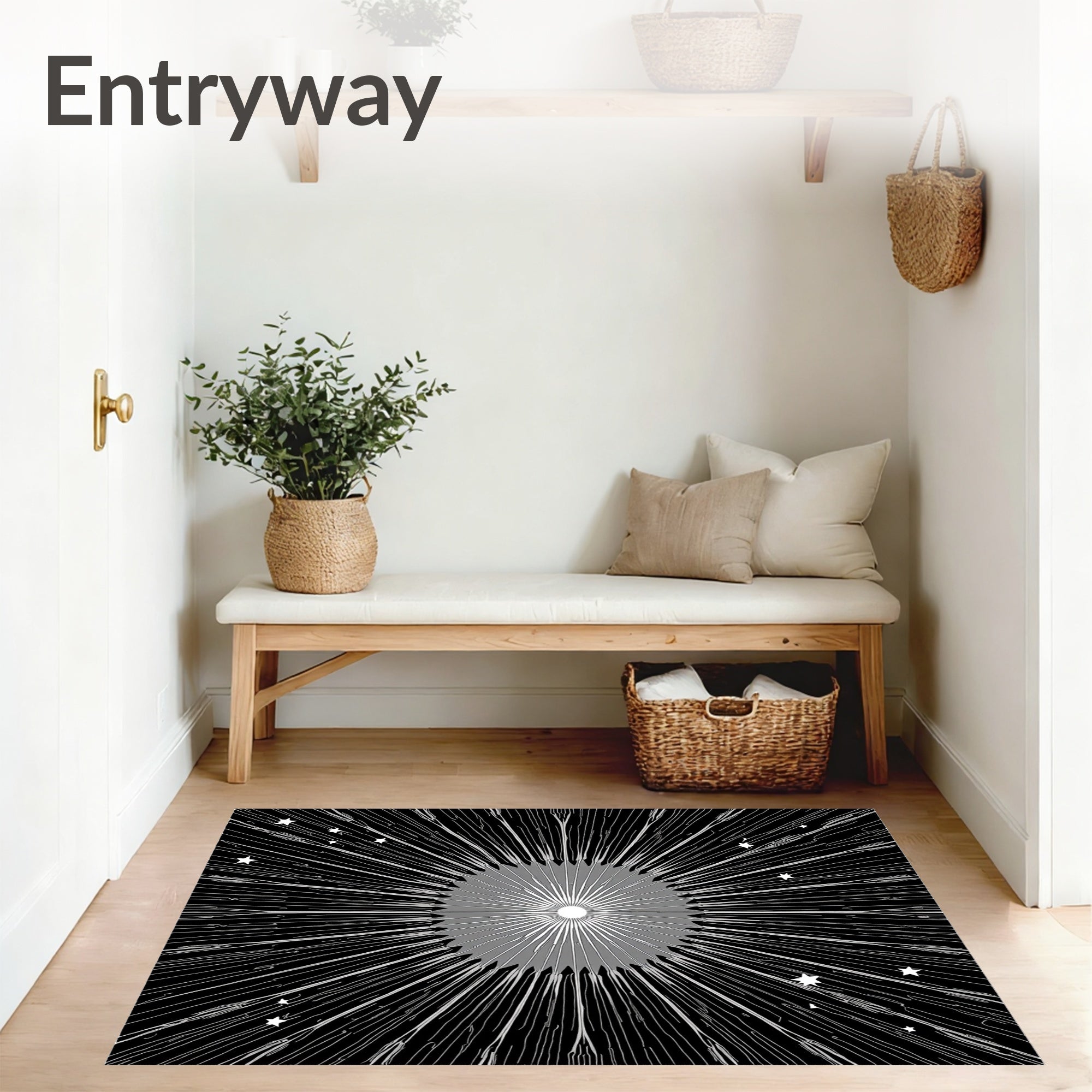 Flatwoven High Traffic Area Rug, Celestial Starburst Modern Art with Twinkling Motif Accents, Non Slip, Stain Resistant, Washable Area Rugs for Living Room, Bedroom (Black) Overview: