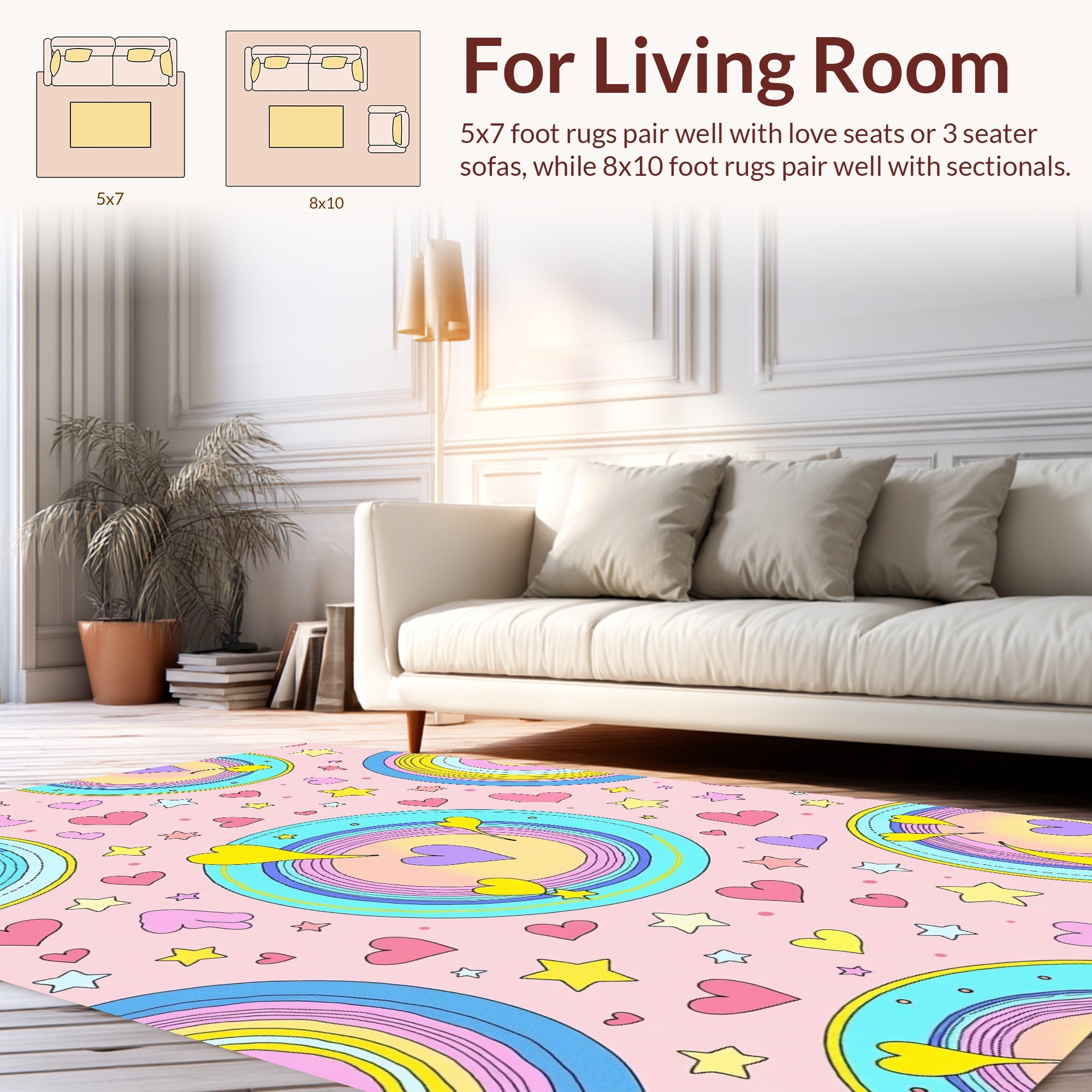Flatwoven High Traffic Area Rug, Charming and Celestial with Hearts Stars, Non Slip, Stain Resistant, Washable Area Rugs for Living Room, Bedroom (Pink) Overview: