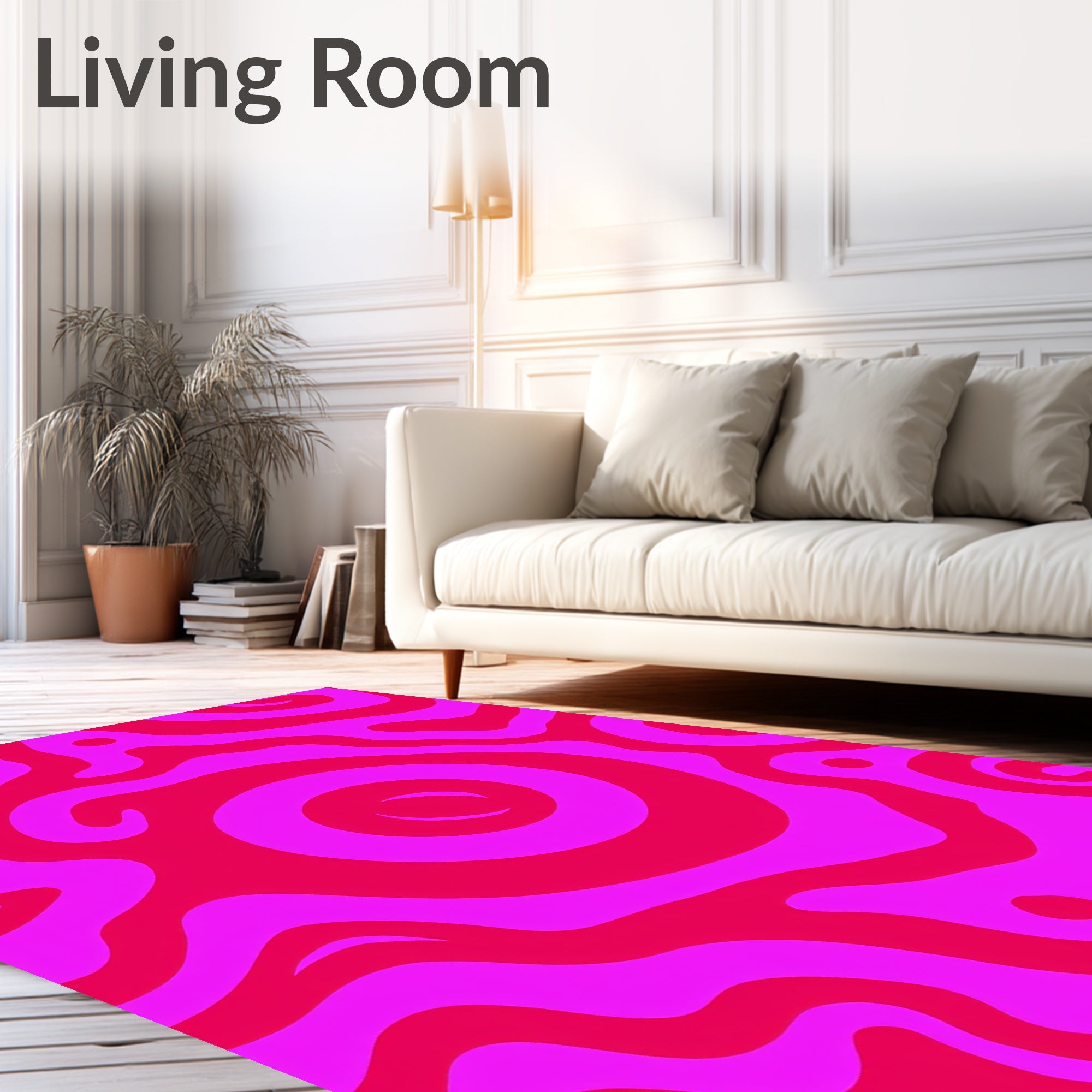 Flatwoven High Traffic Area Rug, Chic Retro Groovy Vintage Funky Trendy Stylish, Non Slip, Stain Resistant, Washable Area Rugs for Living Room, Bedroom (Pink) Overview: