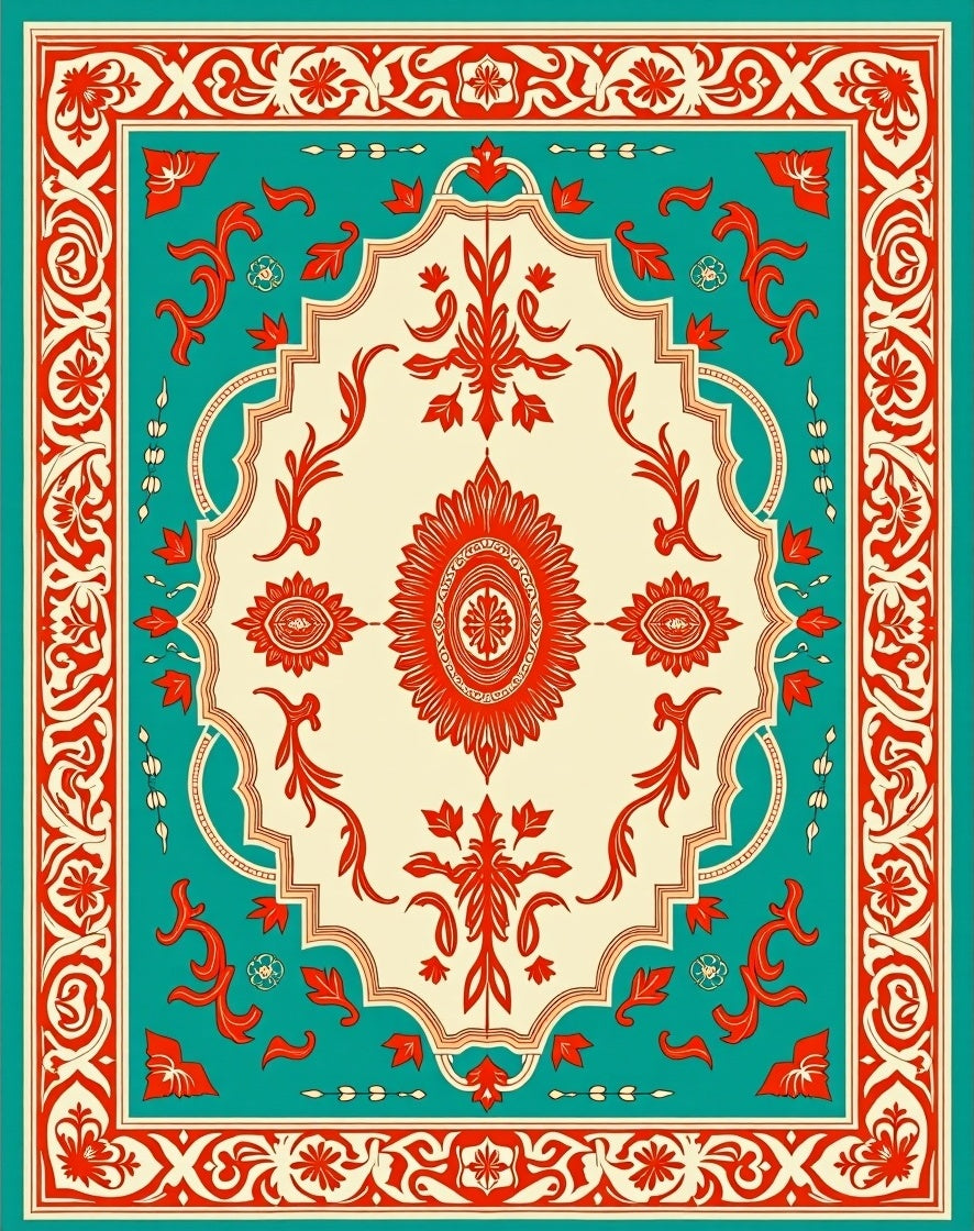 Citrus Burst Medallion Design with Intricate Floral Motifs (Red)