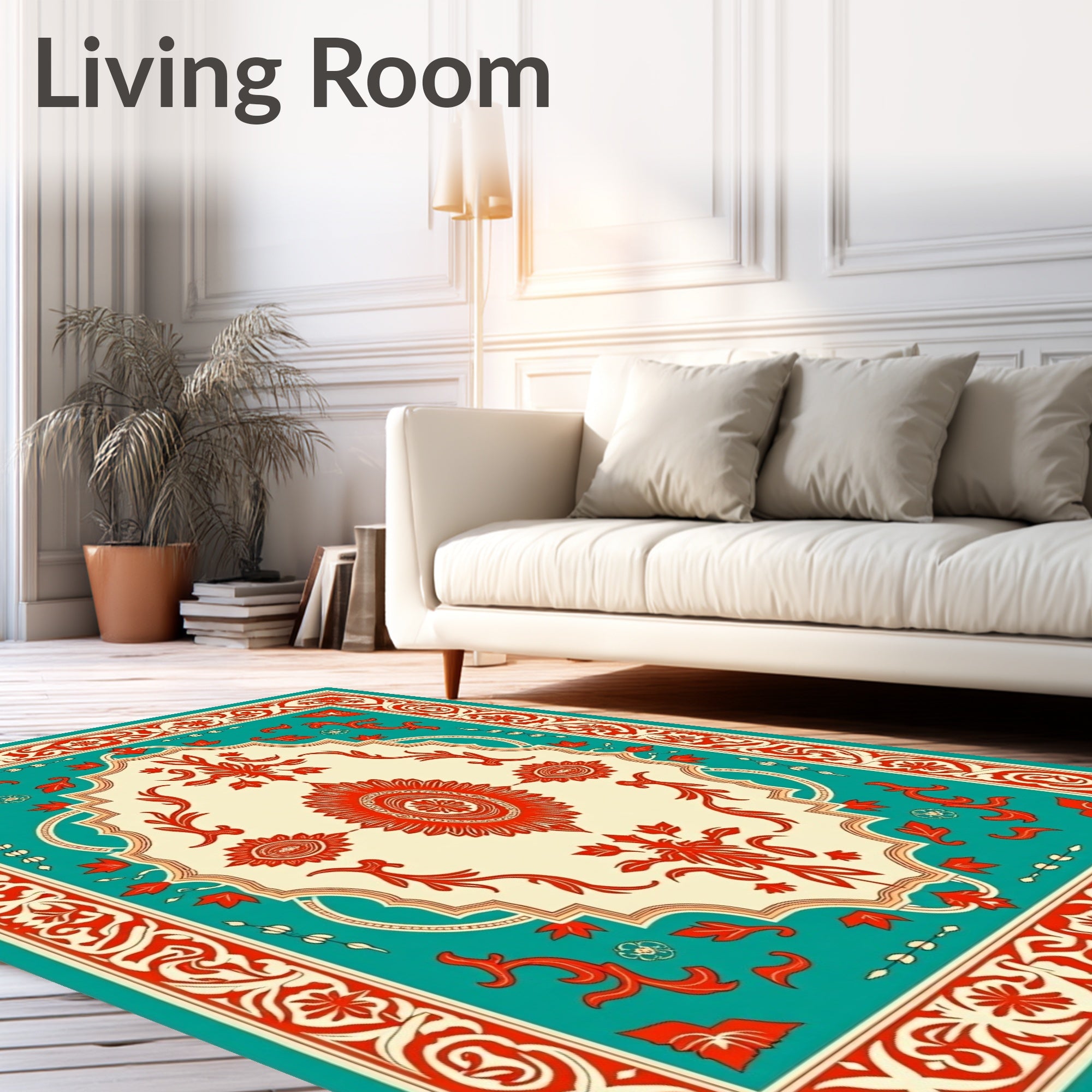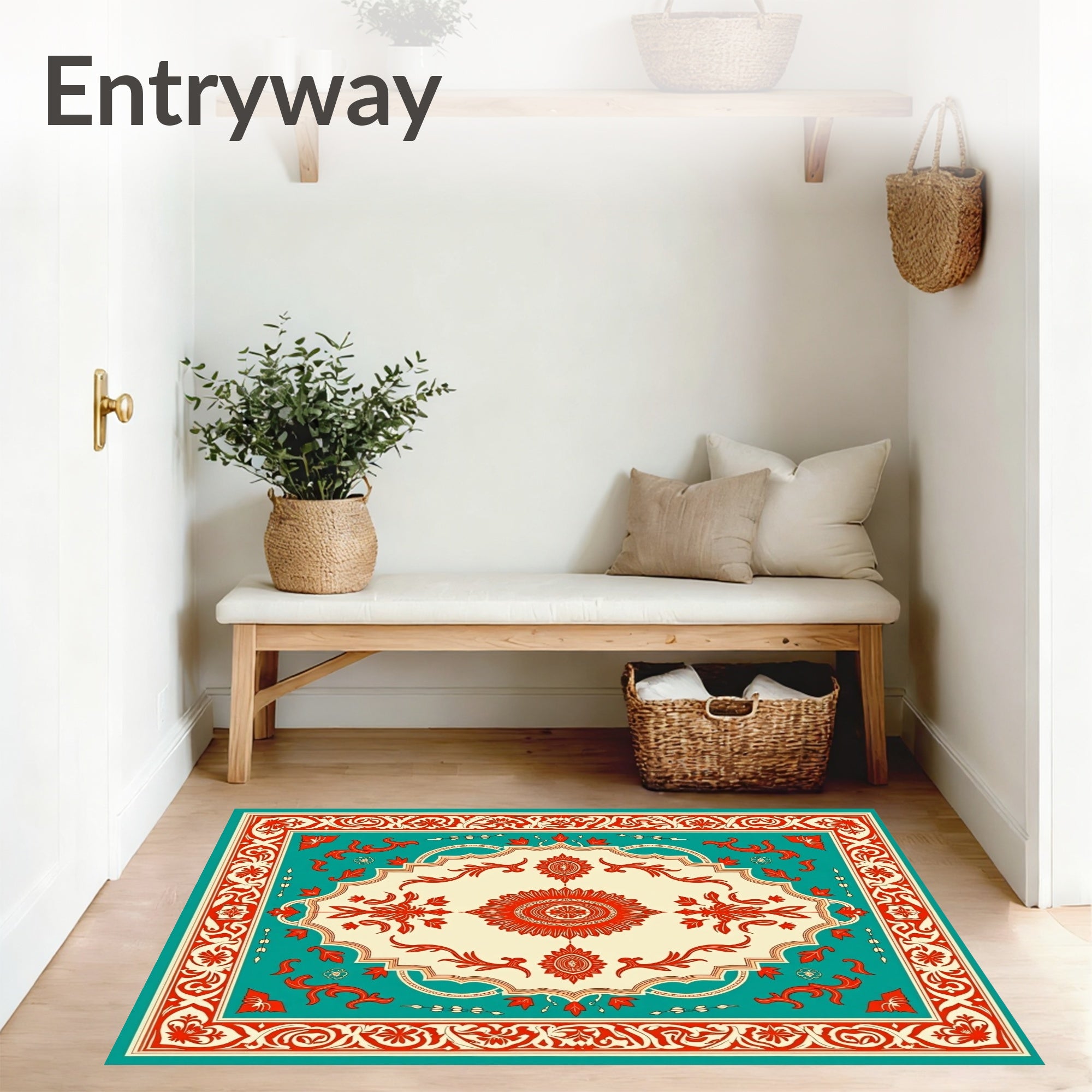 Flatwoven High Traffic Area Rug, Citrus Burst Medallion Design with Intricate Floral Motifs, Non Slip, Stain Resistant, Washable Area Rugs for Living Room, Bedroom (Red) Overview: