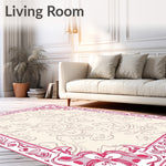 Flatwoven High Traffic Area Rug, Classic Damask Scrollwork Slip Resistant, Non Slip, Stain Resistant, Washable Area Rugs for Living Room, Bedroom (Pink) Overview: