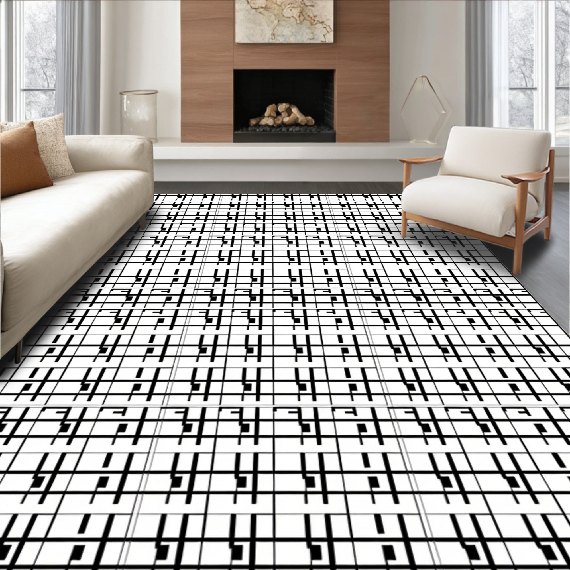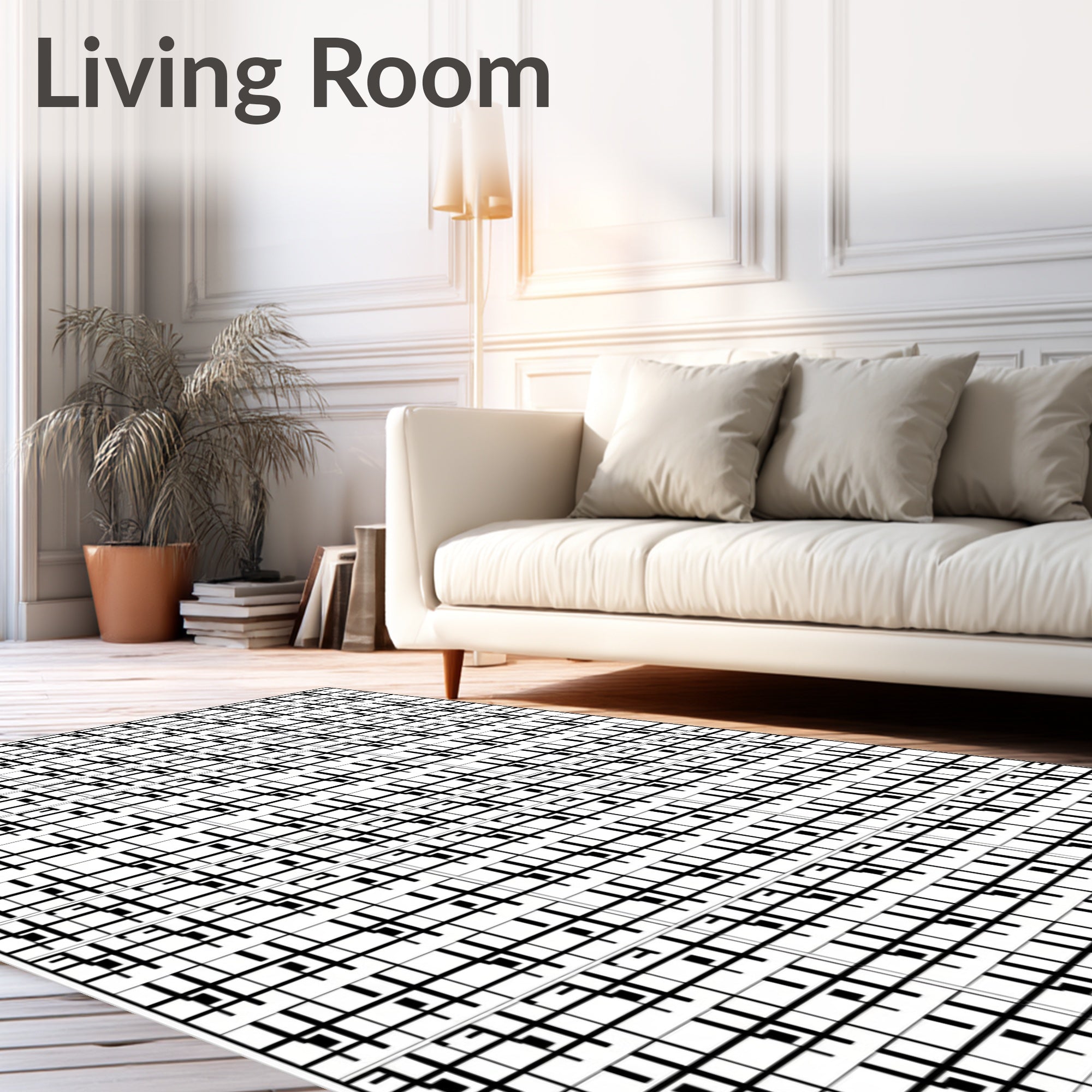 Flatwoven High Traffic Area Rug, Classic Lattice Patchwork with Minimalist Grid Motif, Non Slip, Stain Resistant, Washable Area Rugs for Living Room, Bedroom (Black) Overview: