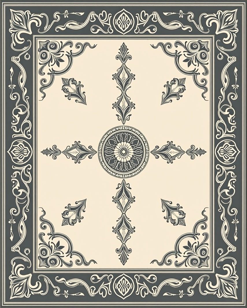 Classic Medallion Motif Surrounded By Intricate Scrollwork Border (Beige)