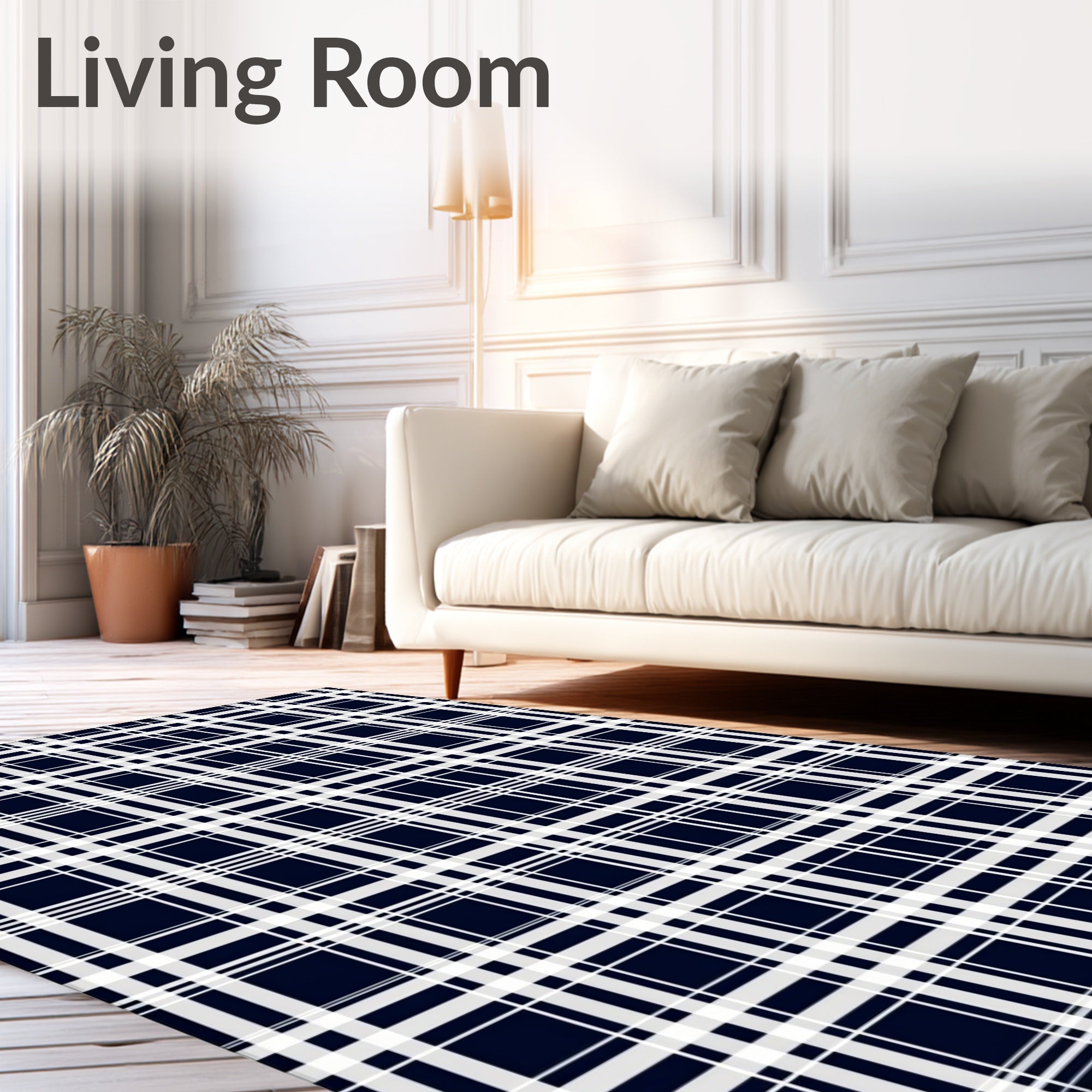 Flatwoven High Traffic Area Rug, Classic Plaid Tartan with Retro Minimalist Checks, Non Slip, Stain Resistant, Washable Area Rugs for Living Room, Bedroom (Blue) Overview: