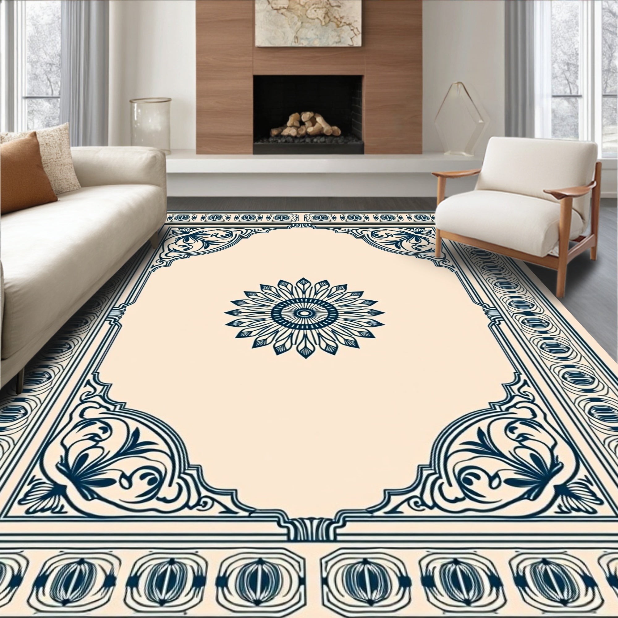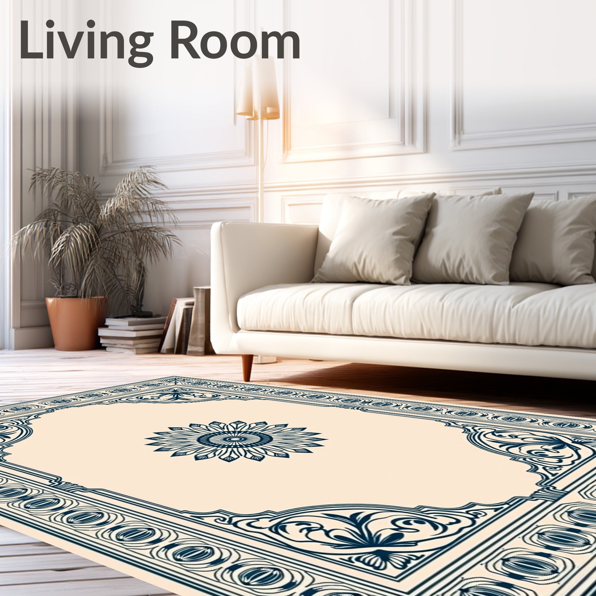 Flatwoven High Traffic Area Rug, Classical Symmetrical Heirloom Timeless Artisan, Non Slip, Stain Resistant, Washable Area Rugs for Living Room, Bedroom (Ivory) Overview: