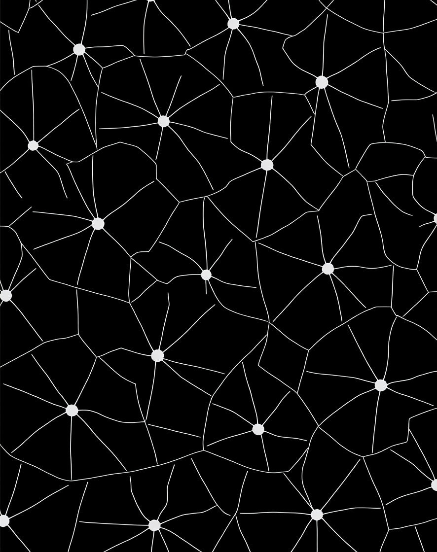 Cluster Design with Interlocking Celestial Orbs and Trails (Black)