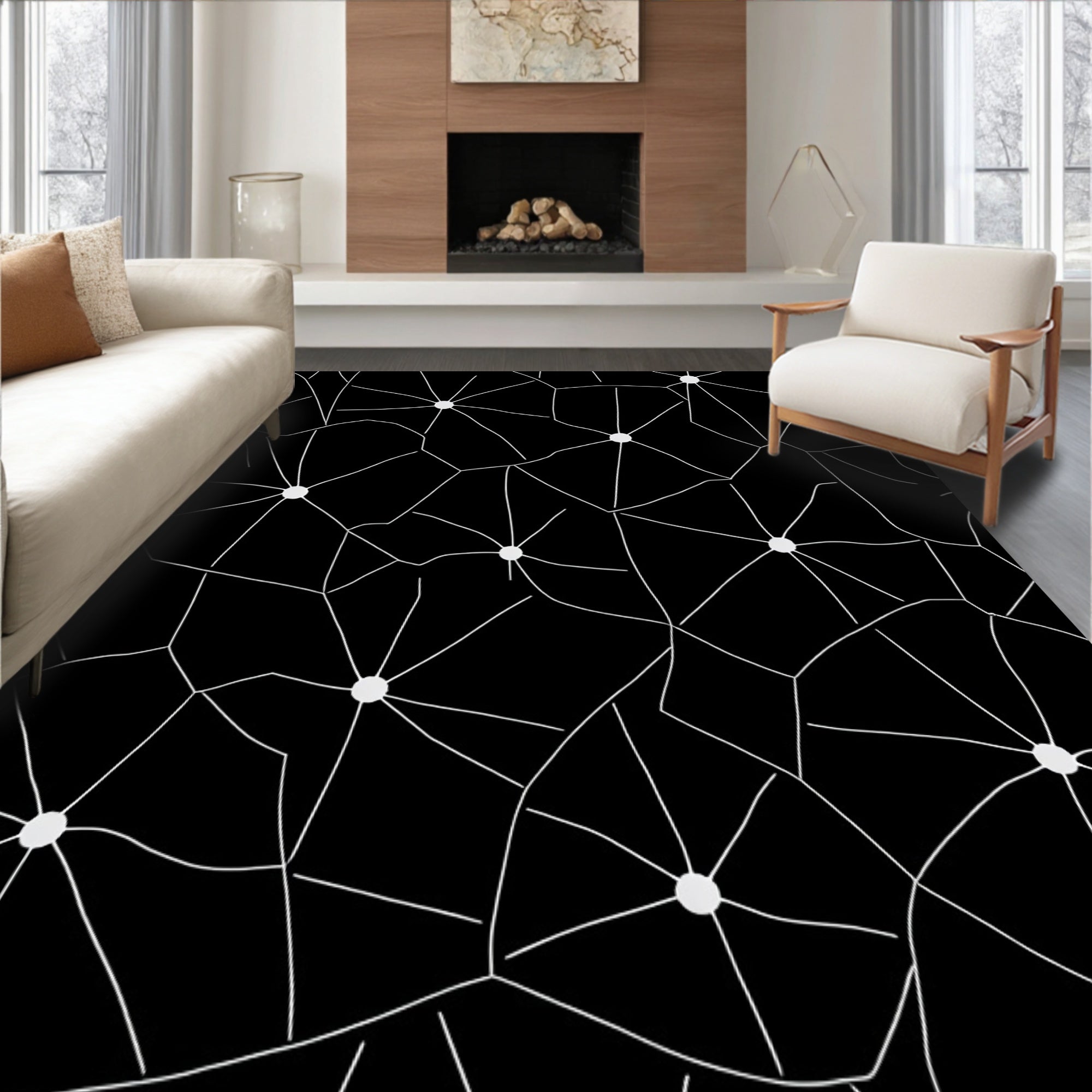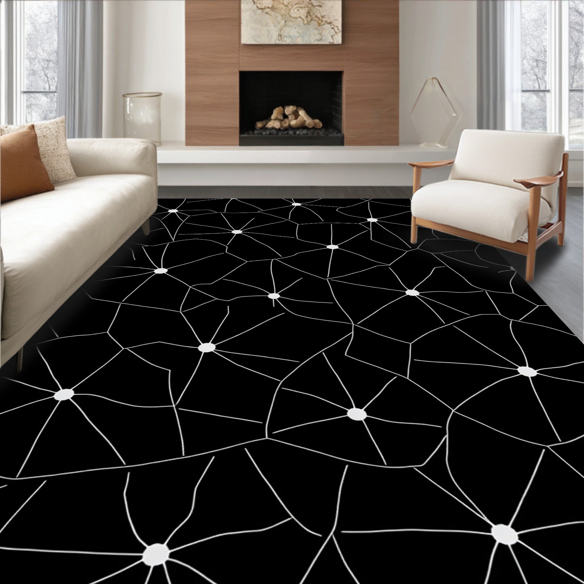 Flatwoven High Traffic Area Rug, Cluster Design with Interlocking Celestial Orbs and Trails, Non Slip, Stain Resistant, Washable Area Rugs for Living Room, Bedroom (Black) Overview: