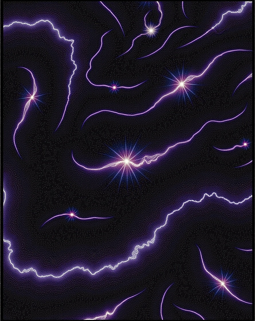 Cluster with Interlocking Galaxies and Comet Streams (Black)