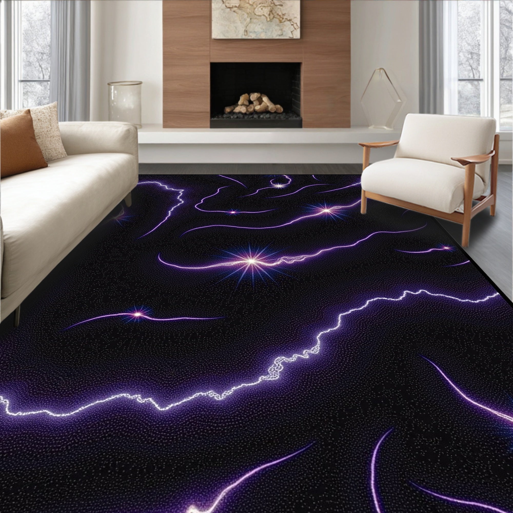 Flatwoven High Traffic Area Rug, Cluster with Interlocking Galaxies and Comet Streams, Non Slip, Stain Resistant, Washable Area Rugs for Living Room, Bedroom (Black) Overview:
