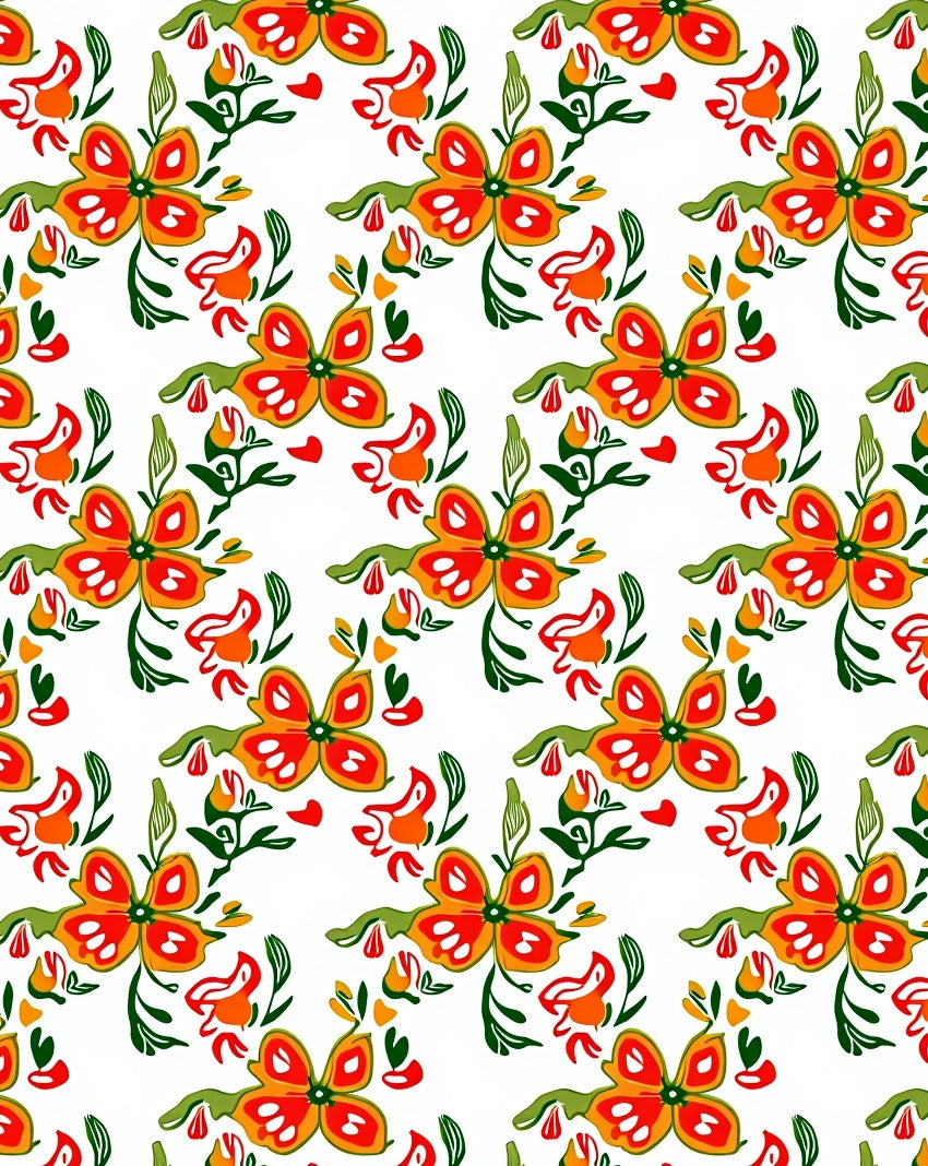 Colorful Boho Chic Arrangement Featuring Stylized Flowers And Leaf Shapes (Orange)