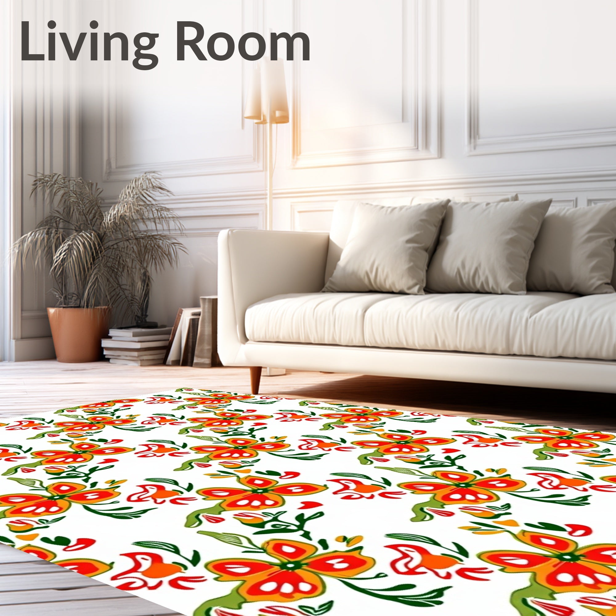 Flatwoven High Traffic Area Rug, Colorful Boho Chic Arrangement Featuring Stylized Flowers And Leaf Shapes, Non Slip, Stain Resistant, Washable Area Rugs for Living Room, Bedroom (Orange) Overview: