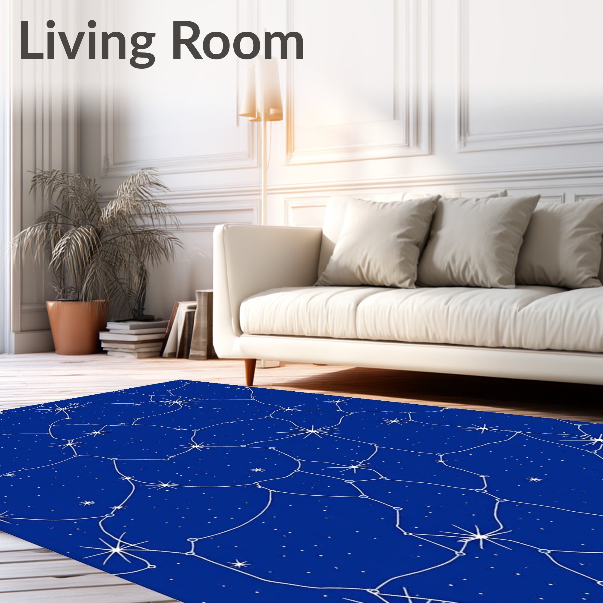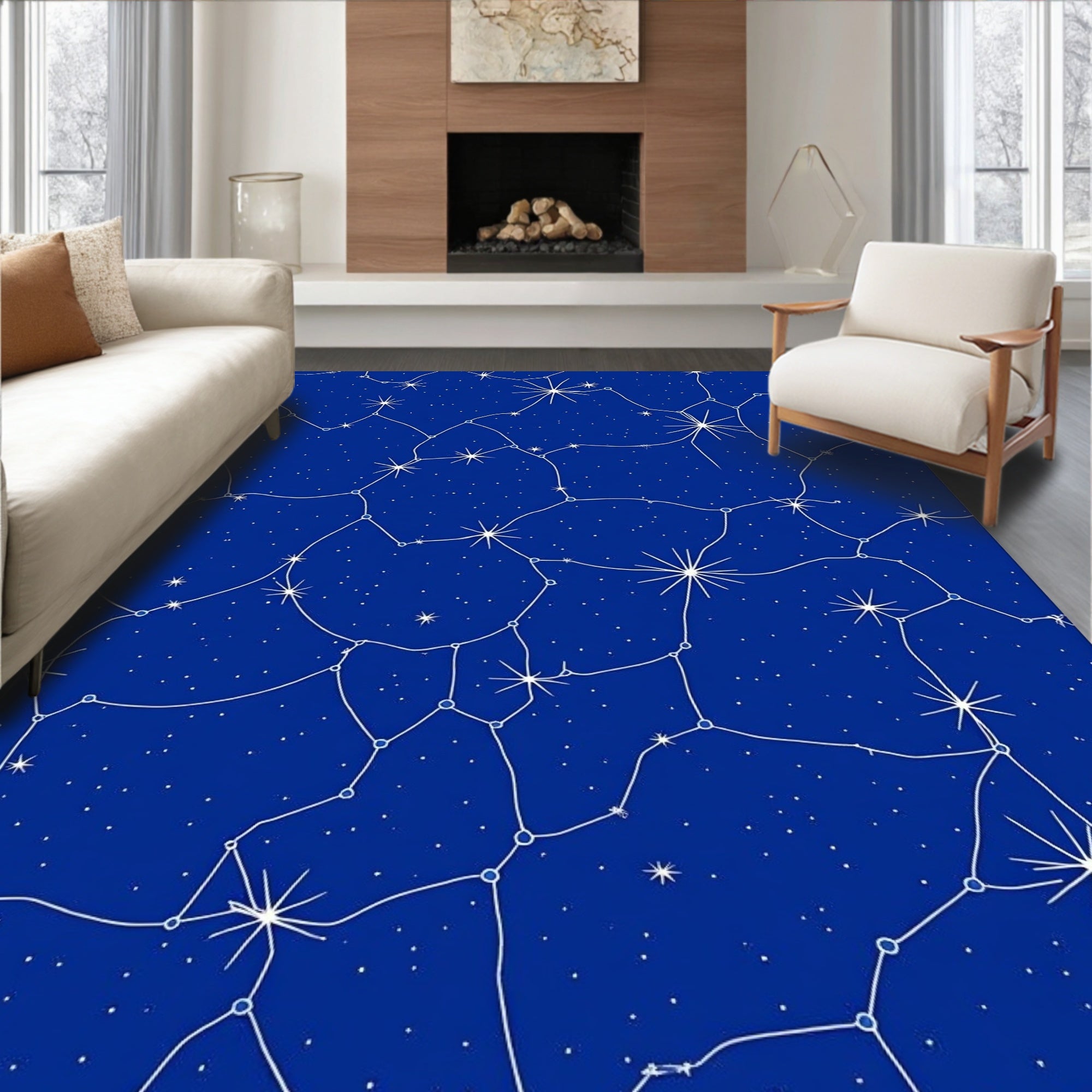Flatwoven High Traffic Area Rug, Constellation Starfield with Twinkling Celestial Motifs, Non Slip, Stain Resistant, Washable Area Rugs for Living Room, Bedroom (Blue) Overview: