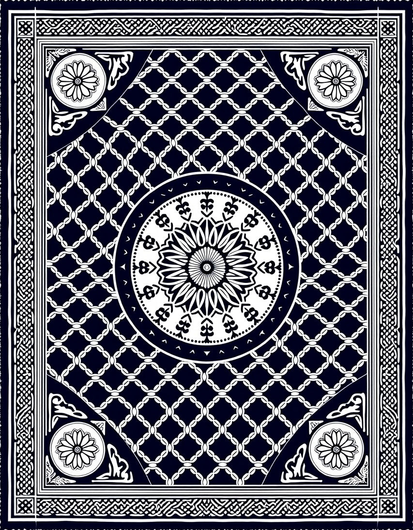 Contemporary Interlocking Lattice with Floral Embellishments (Black)