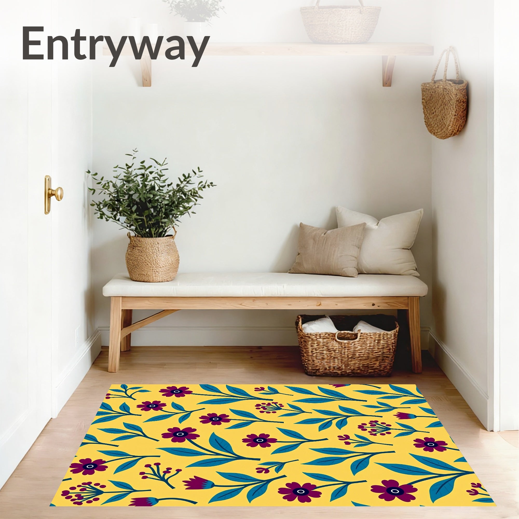Flatwoven High Traffic Area Rug, Contemporary Meadow Bouquet Elegant Sophisticated Charming Graceful, Non Slip, Stain Resistant, Washable Area Rugs for Living Room, Bedroom (Yellow) Overview: