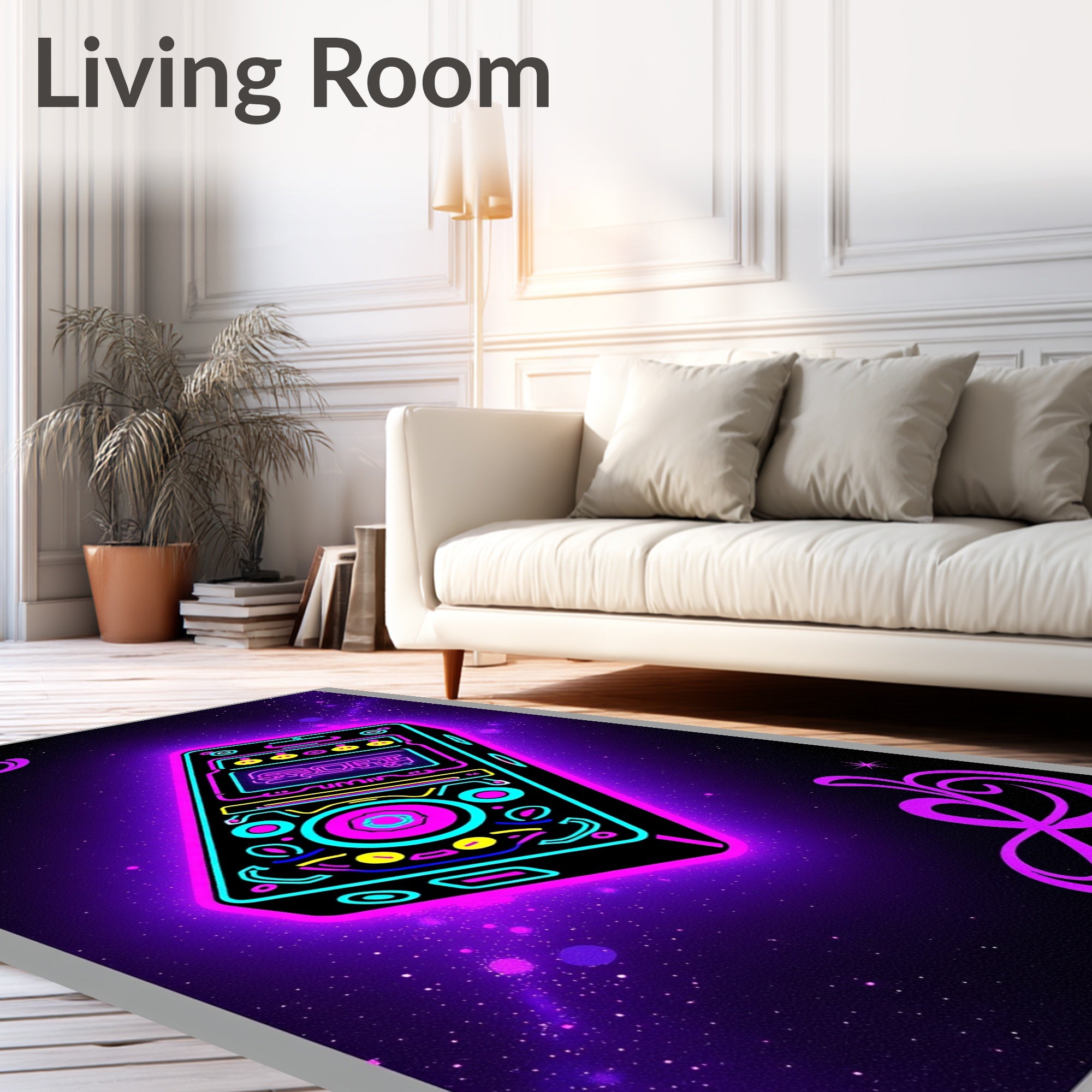 Flatwoven High Traffic Area Rug, Cosmic Console Galactic Buttons Futuristic Electronic Player, Non Slip, Stain Resistant, Washable Area Rugs for Living Room, Bedroom (Pink) Overview: