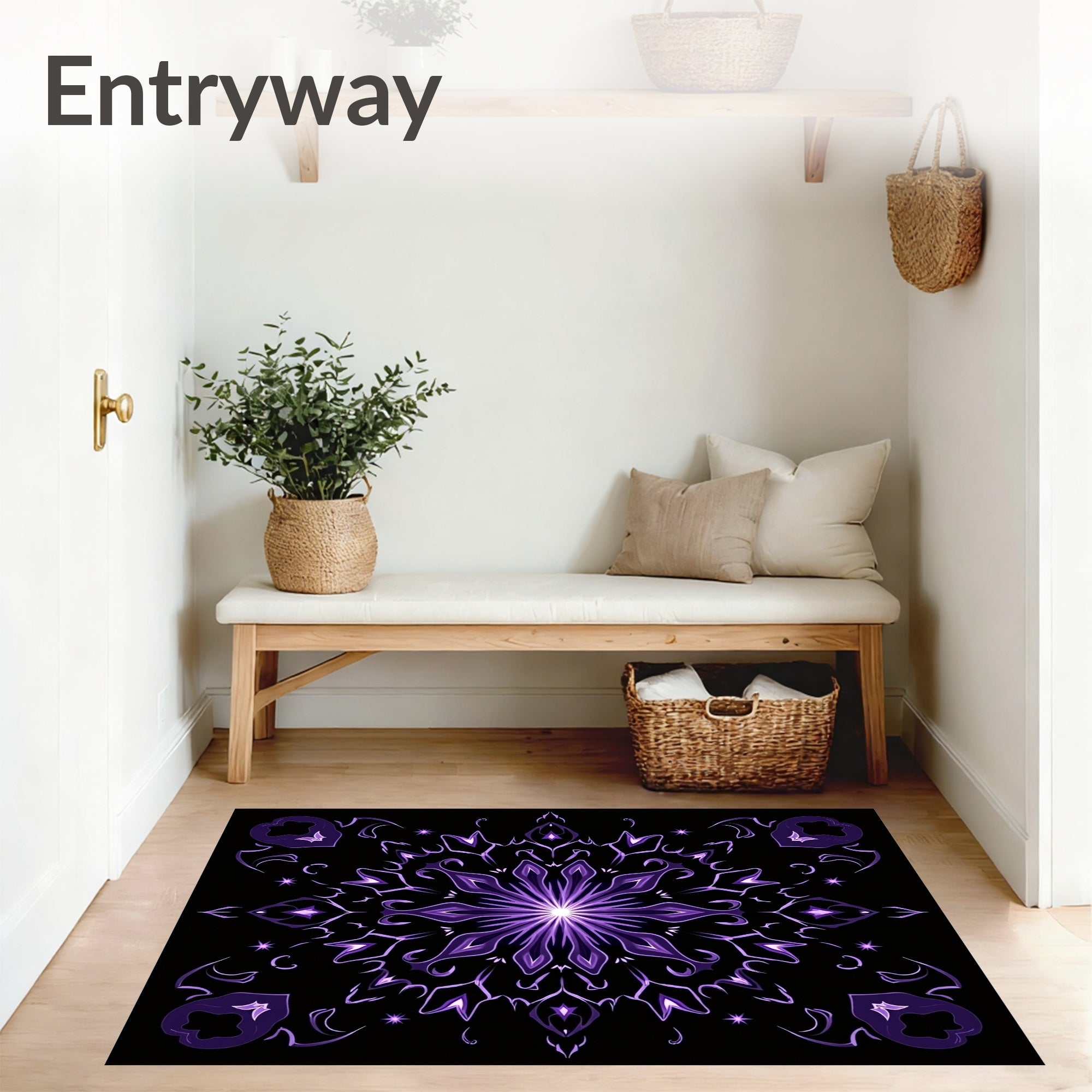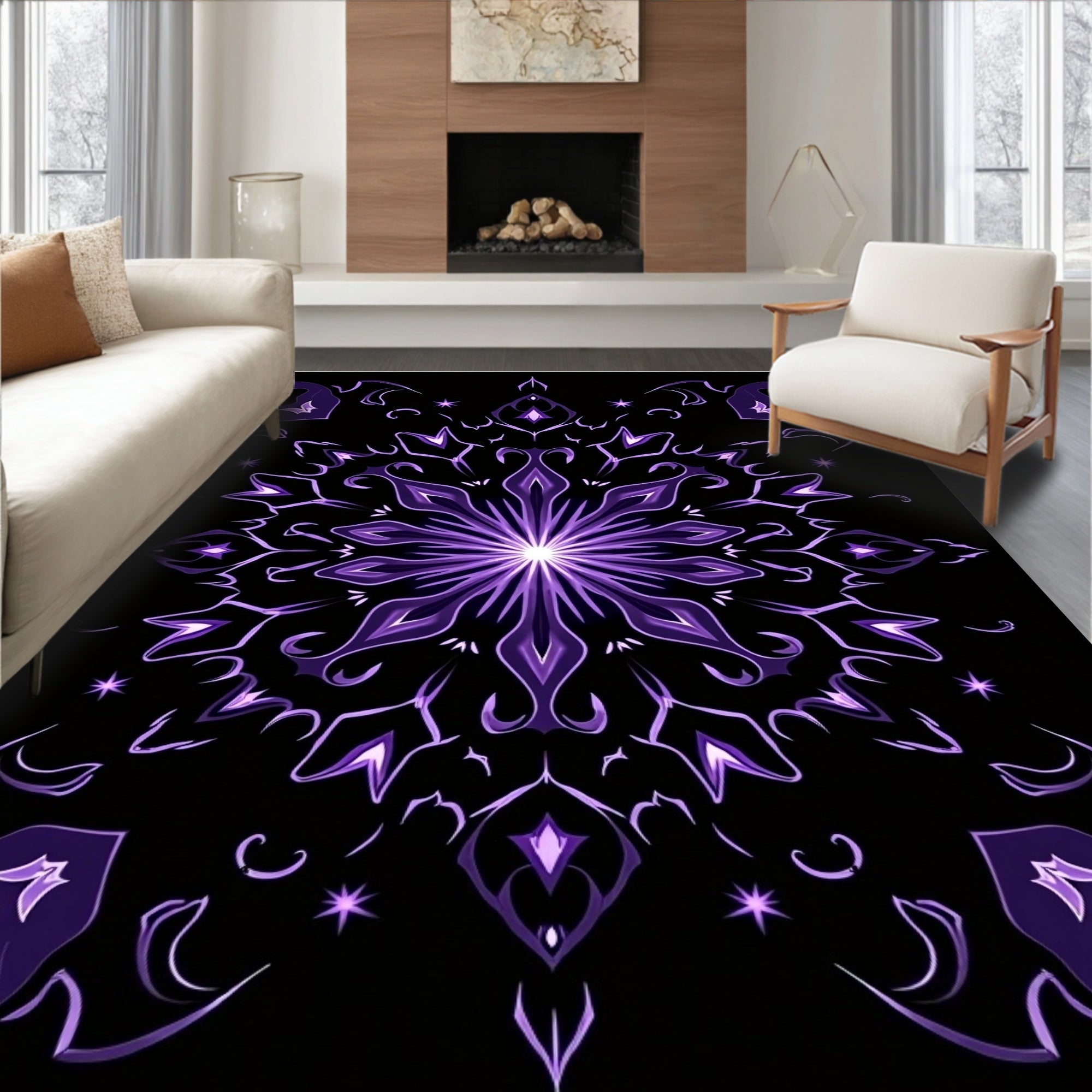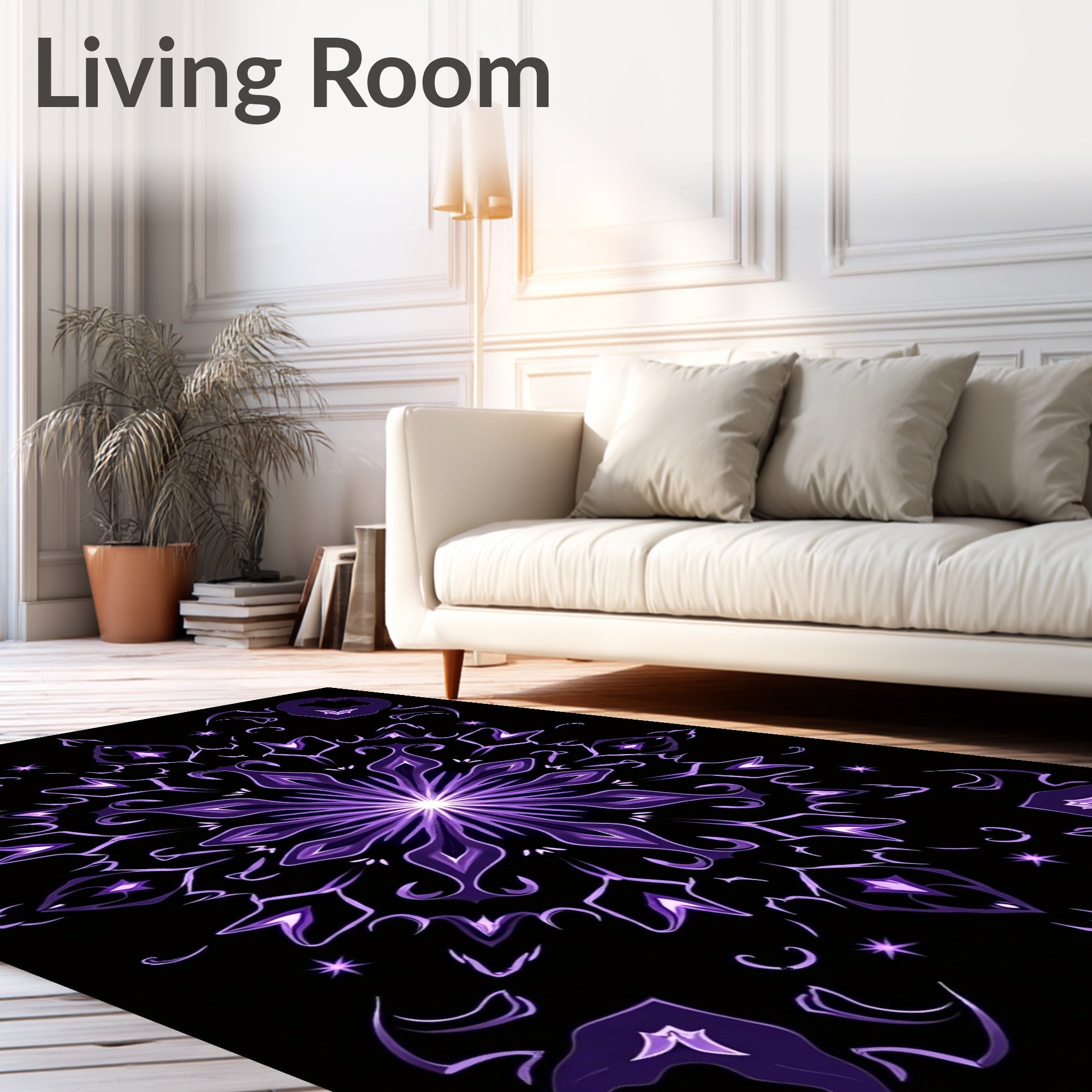 Flatwoven High Traffic Area Rug, Cosmic Starburst Velvet Pile with Celestial Swirls, Non Slip, Stain Resistant, Washable Area Rugs for Living Room, Bedroom (Black) Overview: