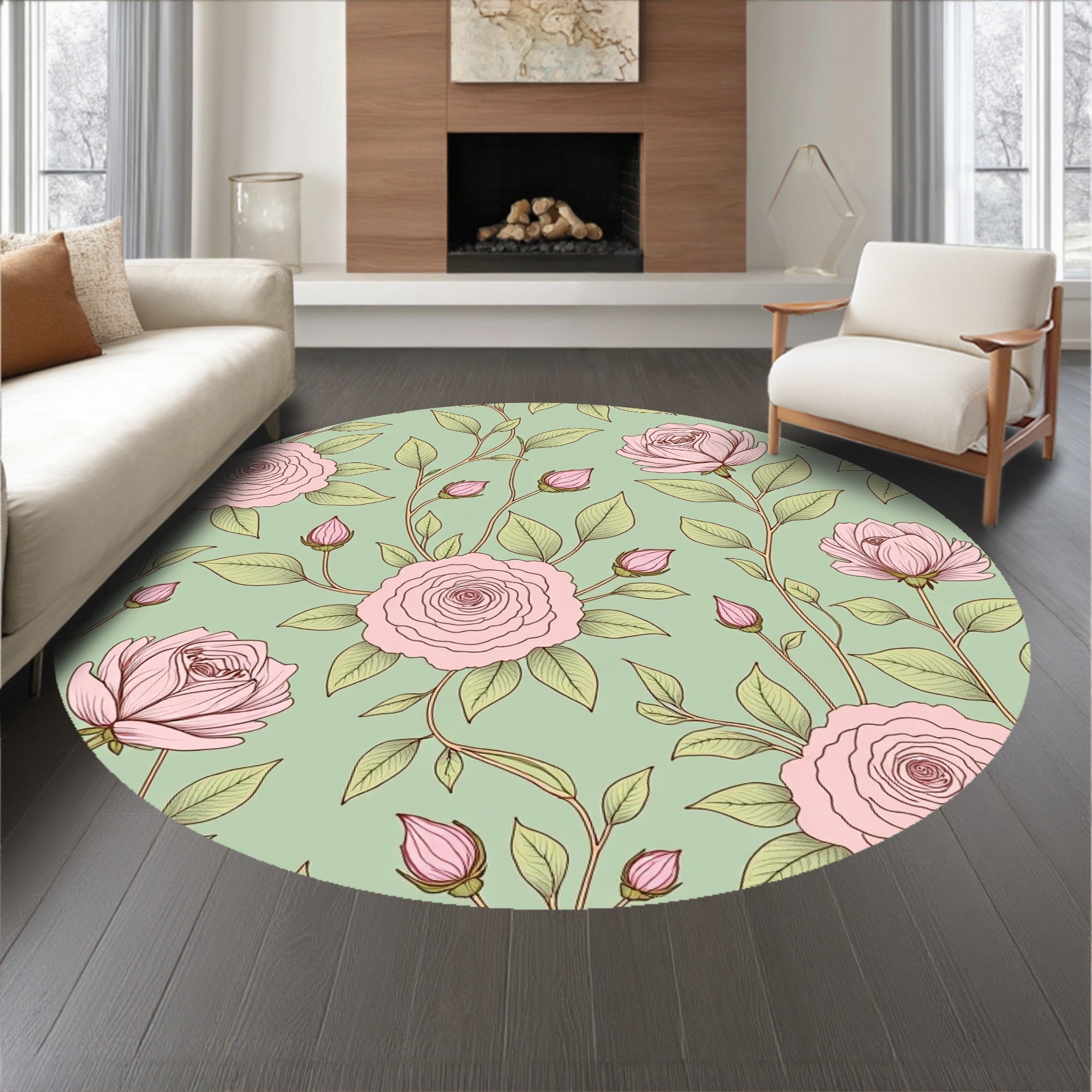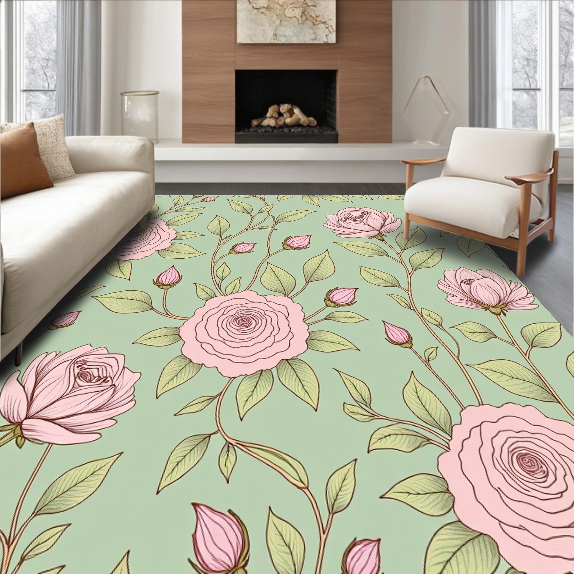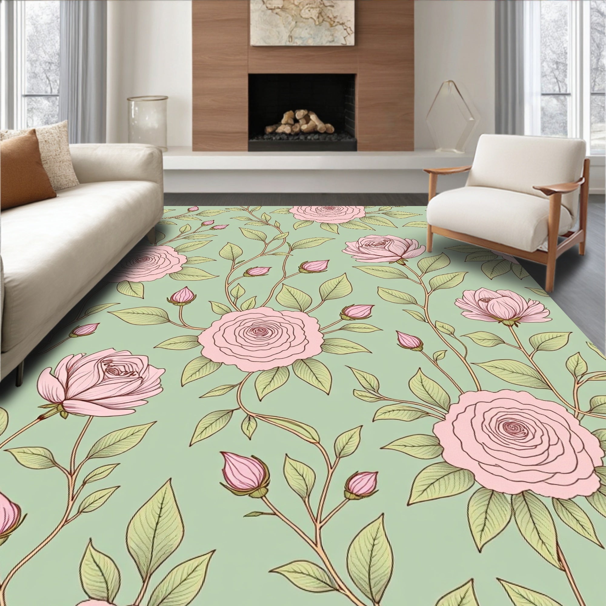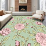 Flatwoven High Traffic Area Rug, Cottage Garden Rose Vine Tapestry with Romantic Appeal, Non Slip, Stain Resistant, Washable Area Rugs for Living Room, Bedroom (Pink) Overview: