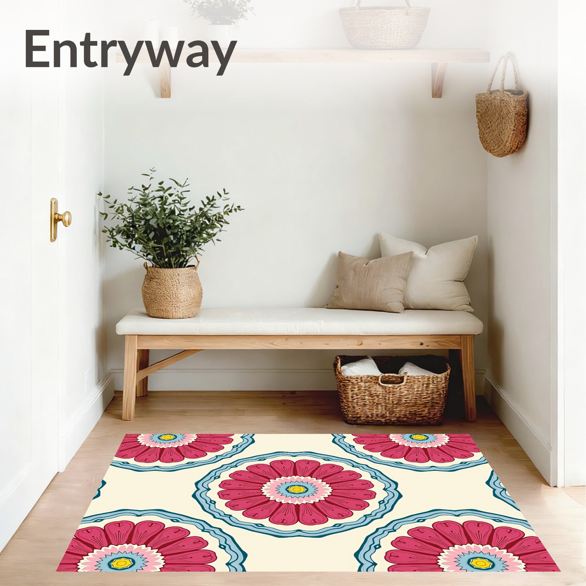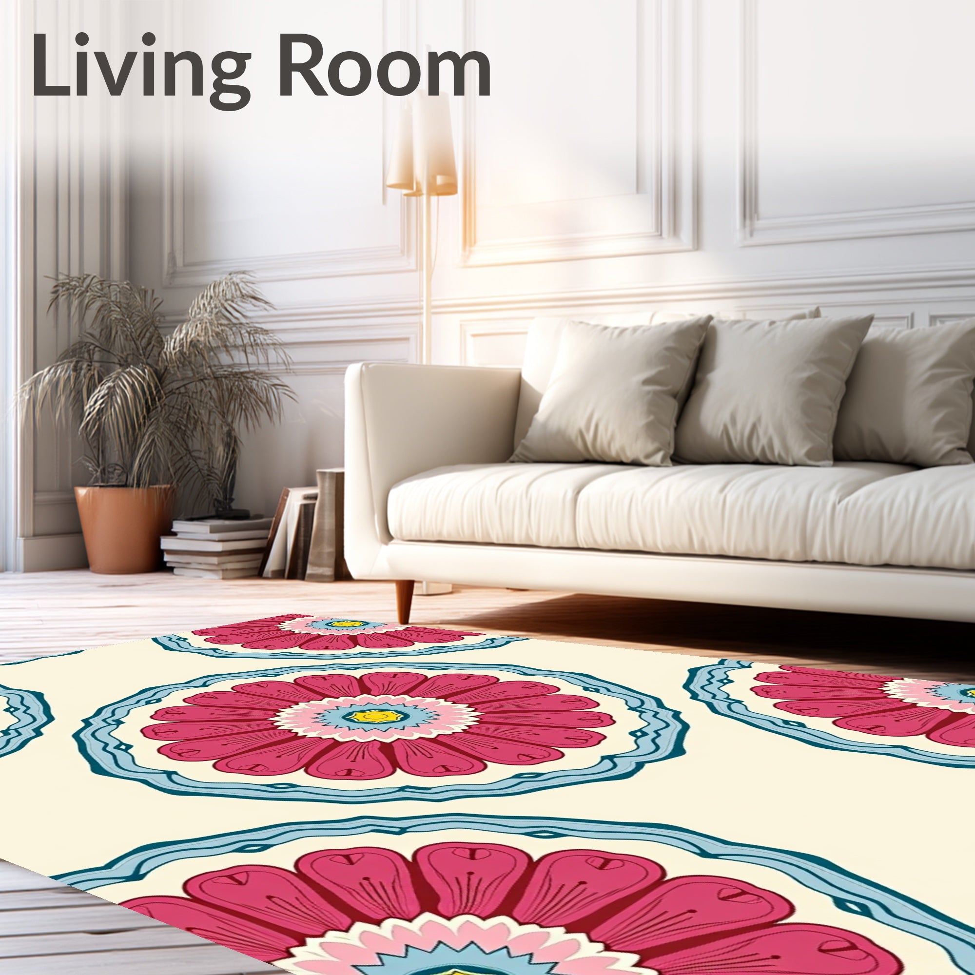 Flatwoven High Traffic Area Rug, Countryside Manor Heirloom Rosette Collection, Non Slip, Stain Resistant, Washable Area Rugs for Living Room, Bedroom (Pink) Overview: